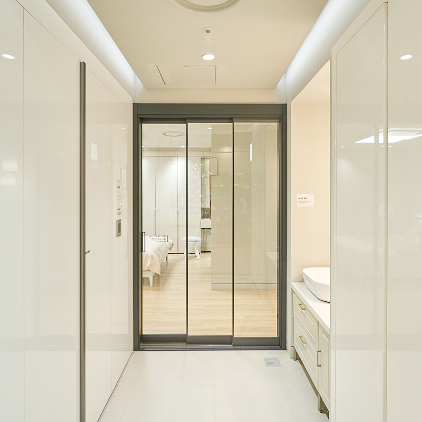 요즘 현관 인테리어의 대세는 중문, 현관존에서는 다양한 중문도 직접 볼 수 있는데요. 부드럽게 닫히고 수월하게 열리는 미닫이와 여닫이, 출입구를 최대한 넓게 쓰는 양개형과 공간을 아껴주는 3연동 중문까지, 리바트 중문은 우수한 단열효과와 소음 차단은 물론 집 전체에 고급스러움을 더해줍니다.