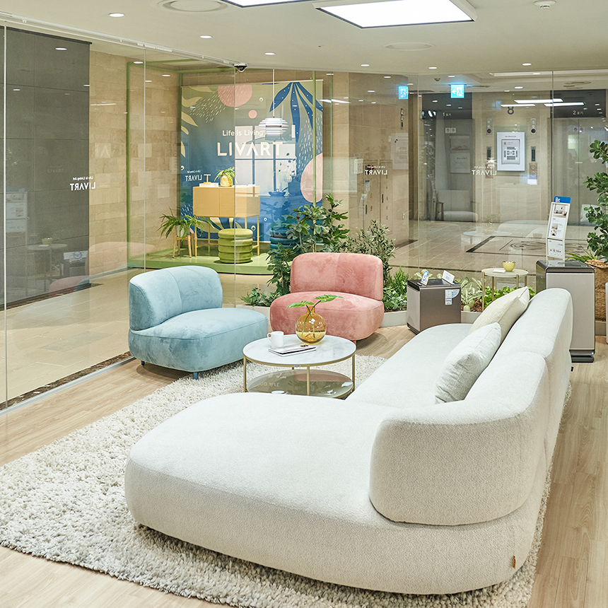 라이프스타일 하우스에서 현관, 거실, 욕실 등을 한 번에 확인했다면 이번엔 리바트 리빙에서 좀 더 꼼꼼히 살펴볼까요? 소파존, 침실존, 식탁존, 현관존이 구획별로 나눠져 있어 필요한 카테고리에만 집중할 수 있답니다.
