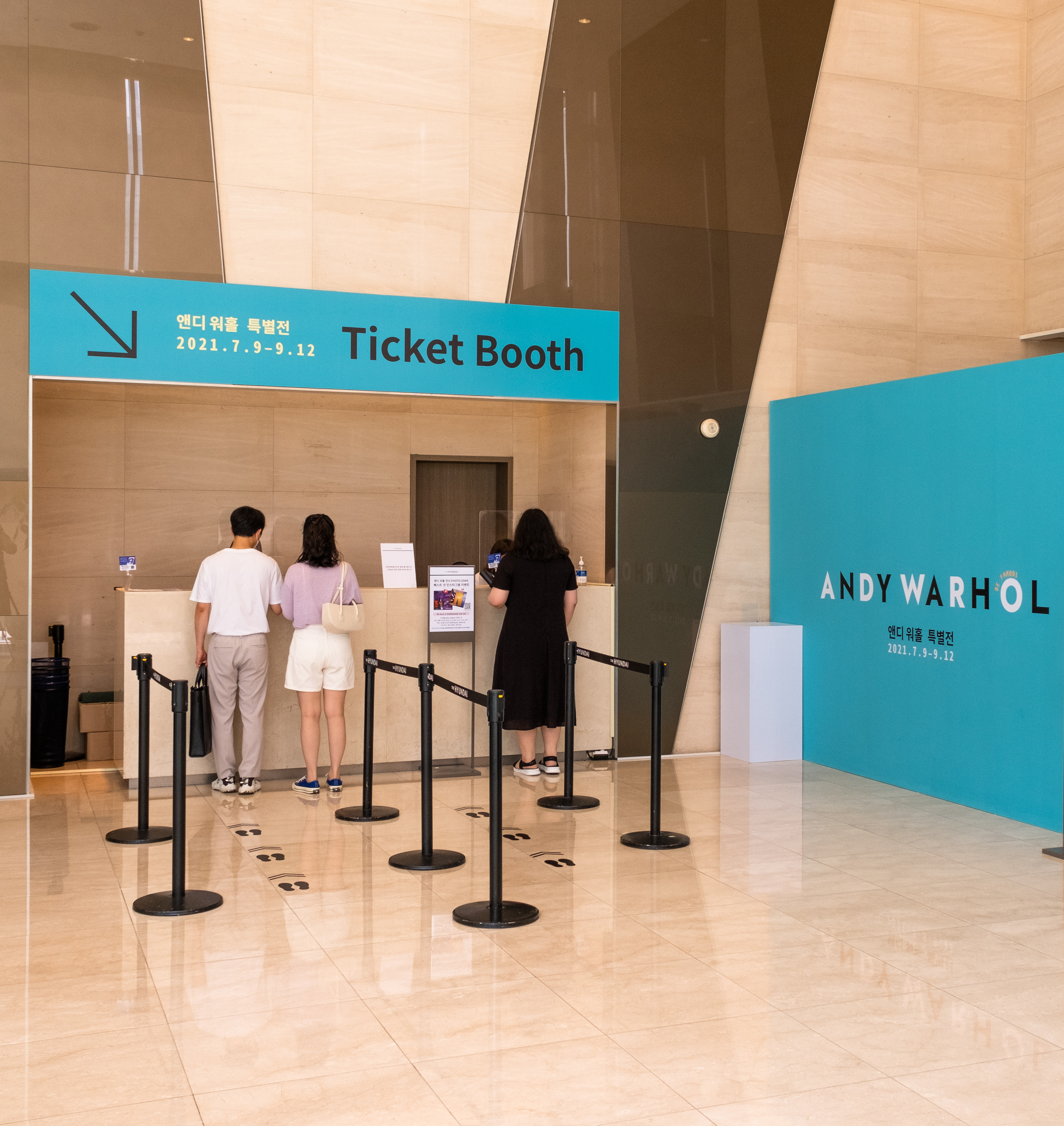 티켓 부스만 보아도 벌써부터 기대가 되는데요. 앤디 워홀 특별전 티켓은 현장예매 또는 네이버 예약에서 미리 구매하실 수도 있답니다. 현대백화점 카드를 사용하시거나 H.Point 회원 쿠폰을 현장에서 제시하시면 30% 할인도 받을 수 있어요.