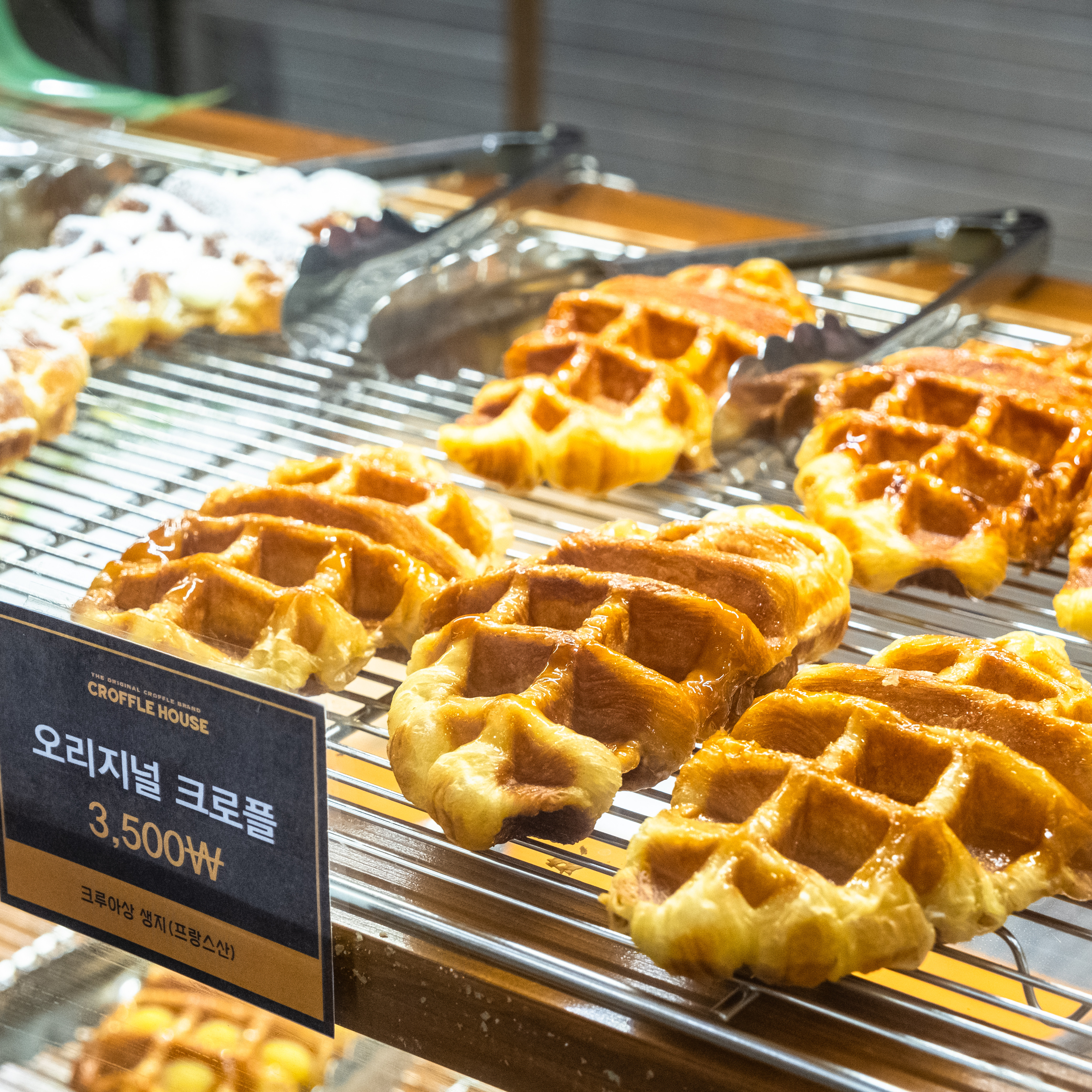 이번엔 지하 1층으로 내려가 볼게요. 현대식품관의 그 명성만큼 수많은 맛집들이 눈길을 사로잡는데요. 크로아상과 와플의 장점만을 모은 완벽한 조화! 겉은 바삭 속은 쫀득, 크로플의 매력을 아신다면 대구점의 크로플하우스를 놓칠 수 없죠. 크로플하우스에서는 프랑스에서 직수입한 재료에 100% 퓨어버터와 케이지프리 계란만 사용해요. 오리지널부터, 마스카포네, 고구마, 초코, 그리고 피넛베리까지 크로플을 깔고, 그 위에 생크림, 바닐라크림, 리얼 블루베리 크림치즈 디핑소스까지 더해보세요. 레이어 사이사이 스며든 버터가 잼과 치즈까지 만나 입안을 가득 채우면 세상 다시없을 것 같은 새콤달콤함에 행복해질 거예요.