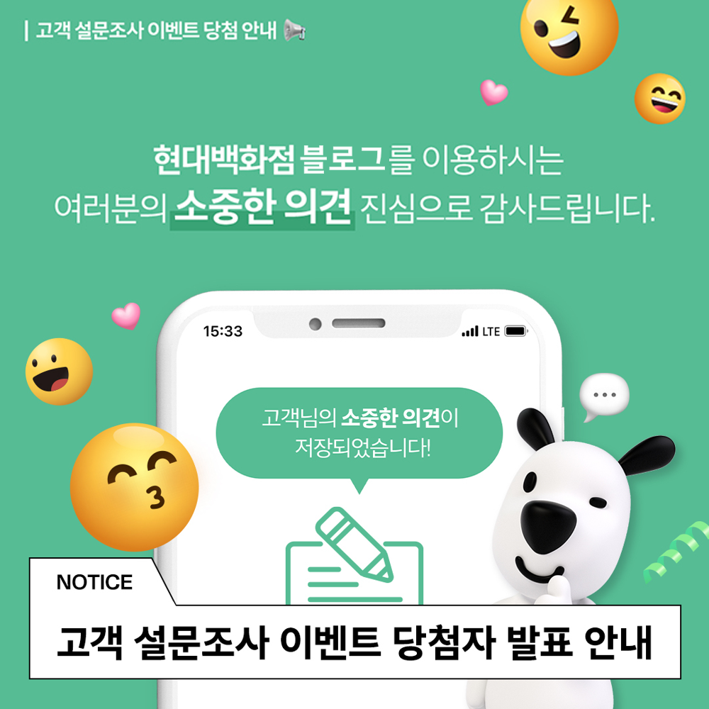 현대백화점 고객 설문조사 이벤트 당첨자 발표 안내