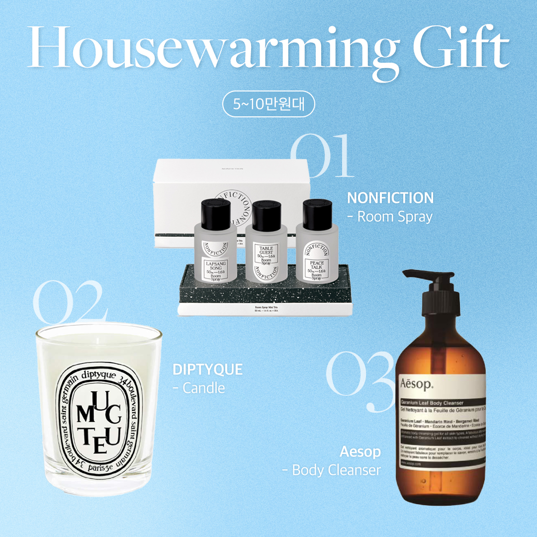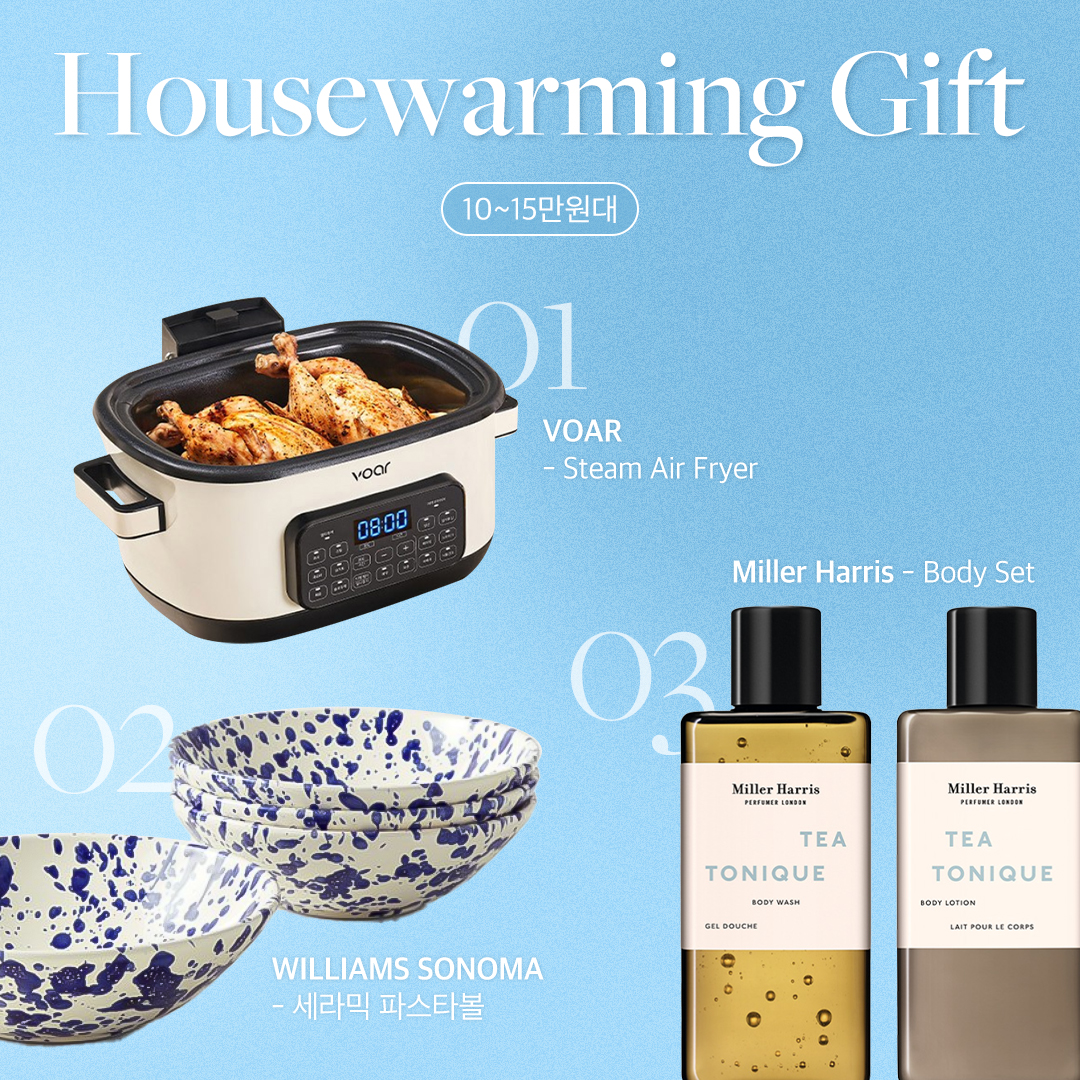 따스한 공기가 몸을 감싸는 완연한 봄 5월. 화창한 날씨의 축복을 받는 결혼식으로 가득한 달이기도 합니다. 또한 결혼식 후 많은 신혼 부부들이 집들이를 하는데요. 집들이를 갈 때마다 고민에 빠지는 분들이 많습니다. 어떤 선물이 진심 어린 축하 마음을 잘 전달할 수 있을까요? 그래서 준비했습니다. 집들이 선물 고민을 끝내줄 가격대별 센스있는 백화점 선물 리스트를 소개합니다.