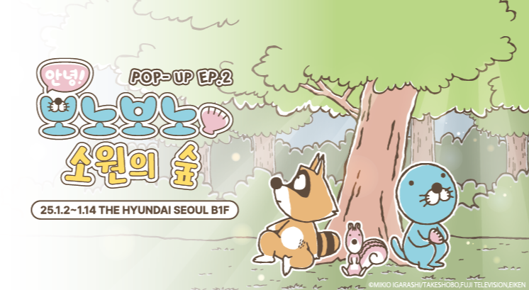 - 지난 팝업에서 조개를 찾은 보노보노와 함께 '메인 포토존'에서 사진을 찍어요.