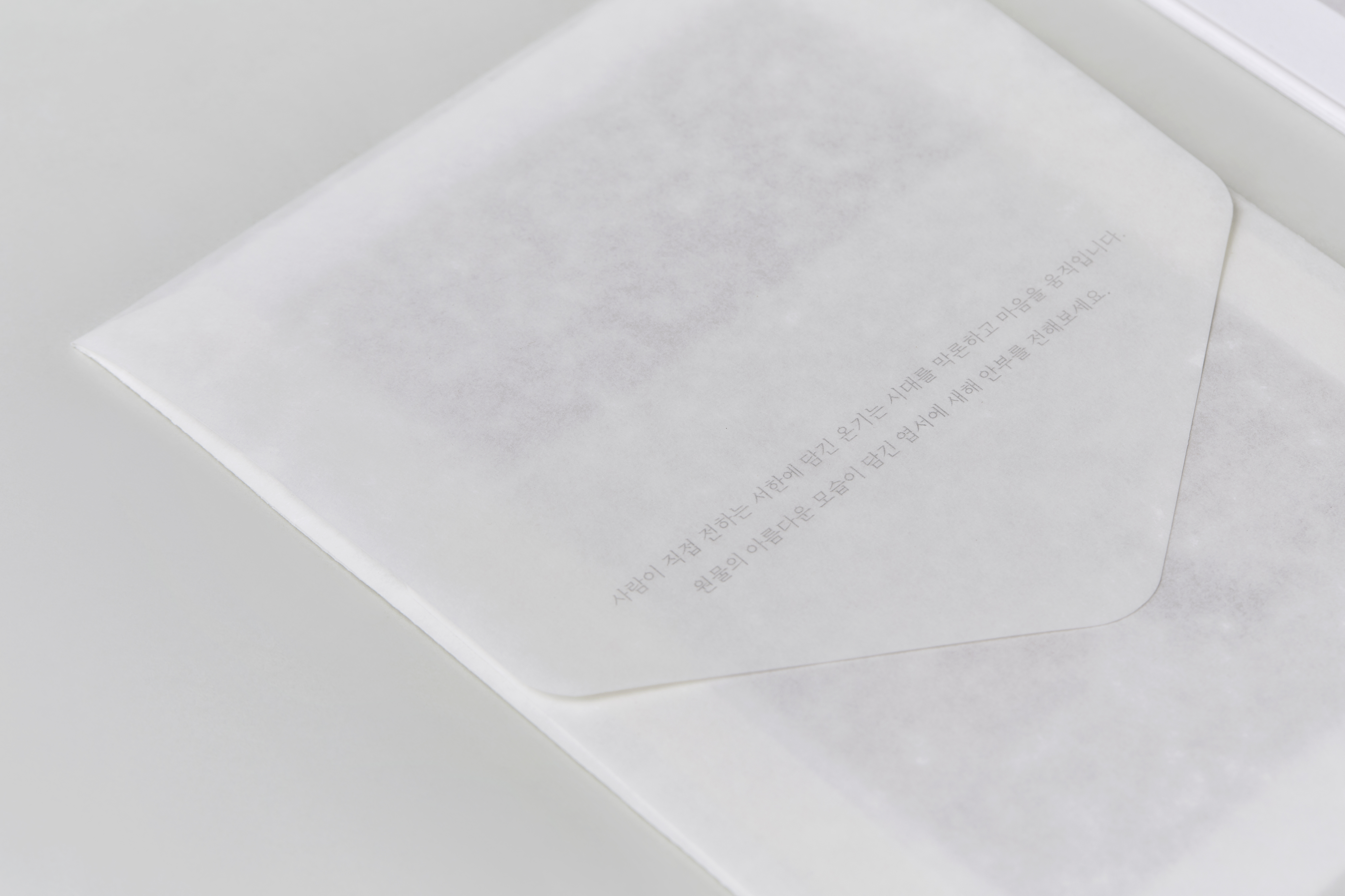 한지와 원물이 함께 한 주요 장면들은 안쪽이 살며시 들여다 보이는 봉투 속에 엽서로 마련했습니다. 귀한 마음을 선물에 더해 서한으로 전해 보세요.