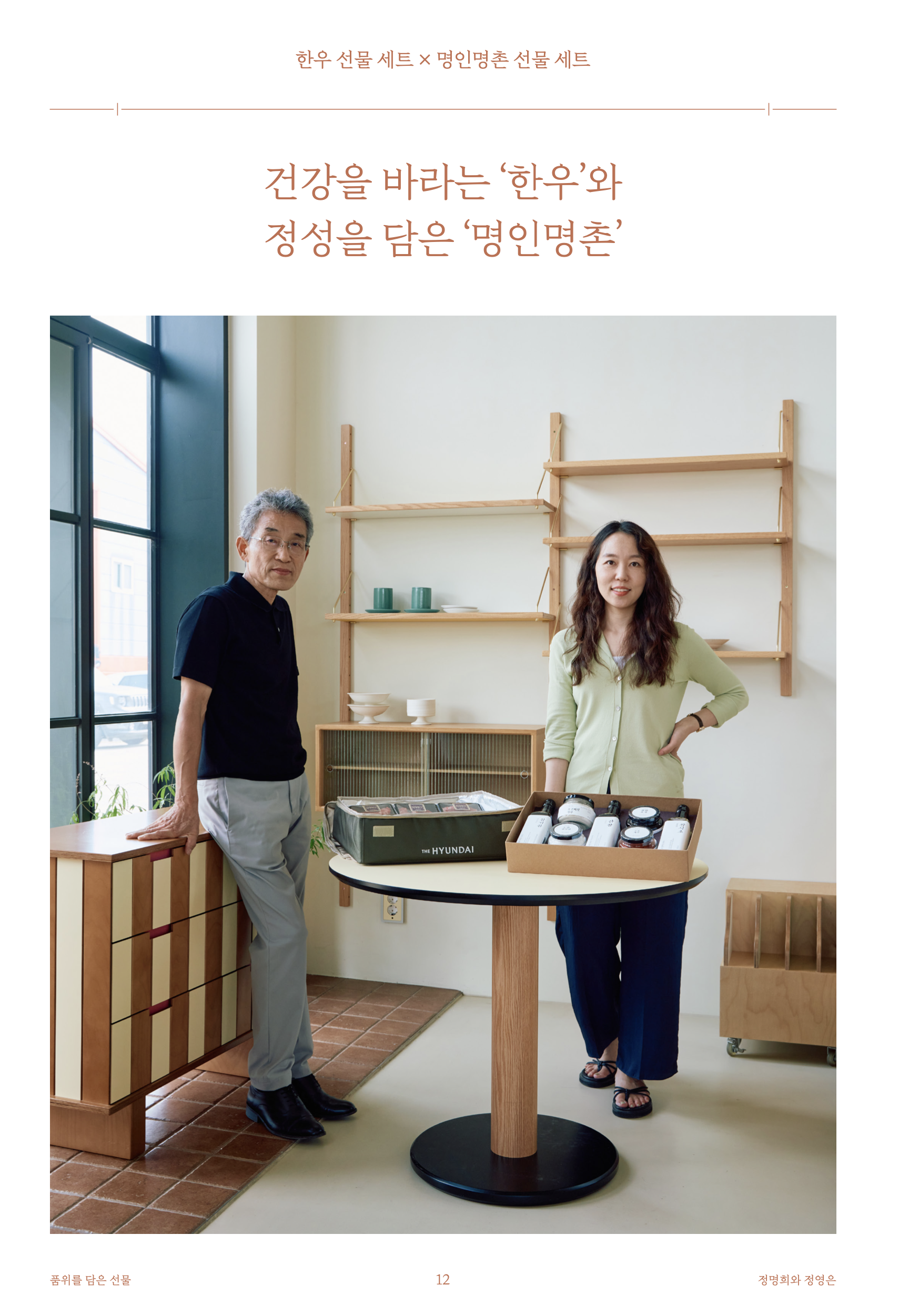 세대와 인연을 생각하는 주제와 맞추어, 2023 추석 선물 인터뷰 역시 두 사람의 만남을 다룹니다. 절친한 선후배 사이인 박찬일-박준우 셰프와 대를 이어 가구를 만드는 정명희-정영은 부녀가 서로에 대한 애정과 선물하는 마음을 이야기합니다. 사진과 글, 영상으로 풀어낸 네 사람의 이야기는 선물집뿐만 아니라 전국 현대백화점 내 명절 예약 창구와 아파트 엘레베이터 내 LCD 등에서 만나보실 수 있습니다.