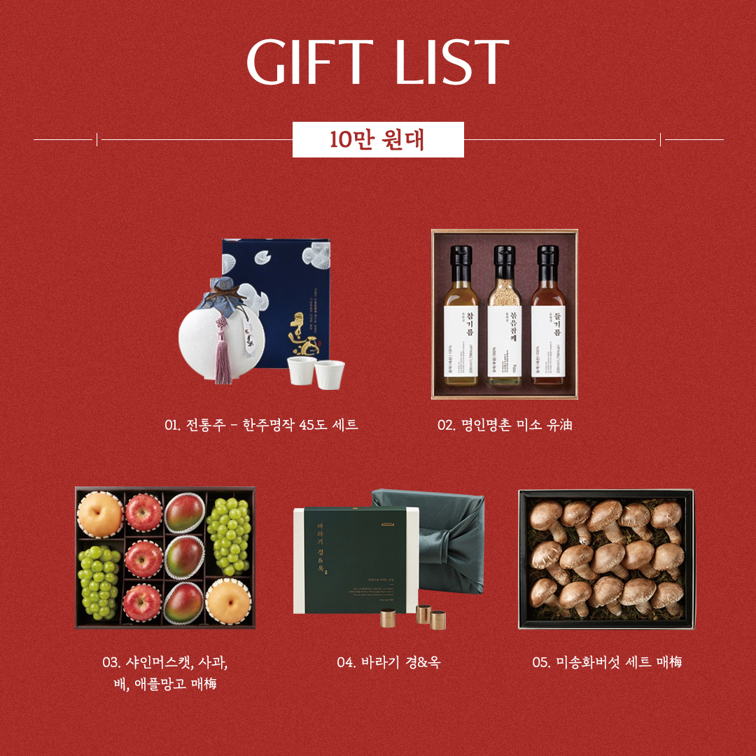 어느덧 추석입니다. ‘이번 명절엔 또 어떤 선물을 준비해야 좋을까’ 고민이 짙어지는 시즌, 현대백화점이 준비한 선물 리스트를 참고해 보세요. 10만원 미만부터 30만원대 이상까지, 실제로 지난 3년간 가장 많은 고객들이 선택한 카테고리별 아이템만 선별했습니다.
