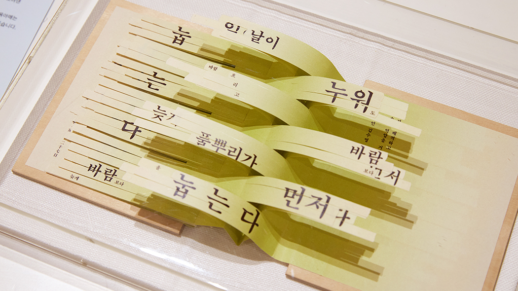 판교점의 시그니처인 현대어린이책미술관MOKA에서도 두 개의 전시가 진행 중입니다. 우선 MOKA 전시실 1·2에서는 <MOKA 북아트 컬렉션>이 열리고 있어요. 이곳엔 기존의 통념을 깨고 다양한 감각으로 재해석된 ‘책’들이 가득합니다. 건축물에 가까운 형태부터 퍼포먼스, 비누 속에 갇힌 이야기 등 50여 점의 작품을 보고 듣고 만지다 보면 여기저기서 예상치 못한 인사이트가 솟아나요. 아이들을 위한 체험 활동이 준비되어 있지만 성인 관람객에게도 충분히 흥미로운 전시입니다.