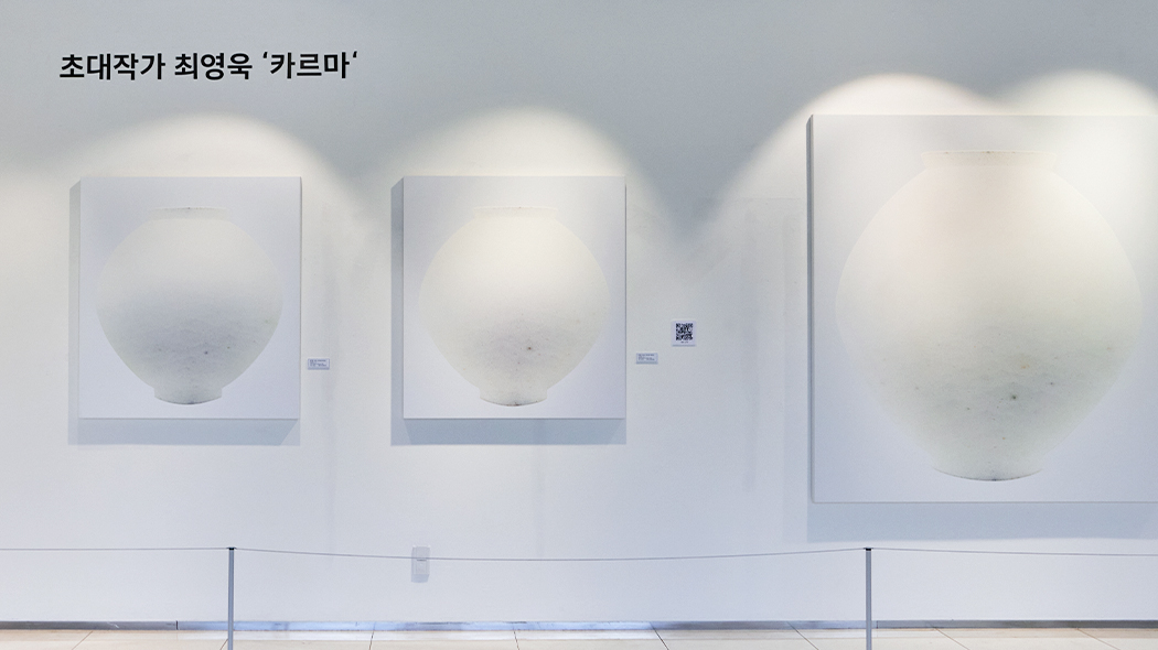 은은한 달항아리 그림으로 사랑받는 최영욱 작가의 <Karma>전도 빼놓을 수 없습니다. <슈퍼컬렉터>展 속 두 번째 테마의 주인공이기도 했던 최영욱 작가는 도자기 위 균열에 그간 지나온 인생길을 담아냅니다. 오랜 시간 캔버스 앞에 앉아 균열을 그리다 보면 저절로 삶을 돌아보게 된다면서요. 많은 것을 둥글게 포용해서일까요? 화려한 장식 하나 없이도 단단하고 따스한 면모가 돋보이는 달항아리 그림. 과연 어떤 이야기를 들려줄지, 하루쯤 그 앞에서 귀기울여 보는 건 어떨까요?