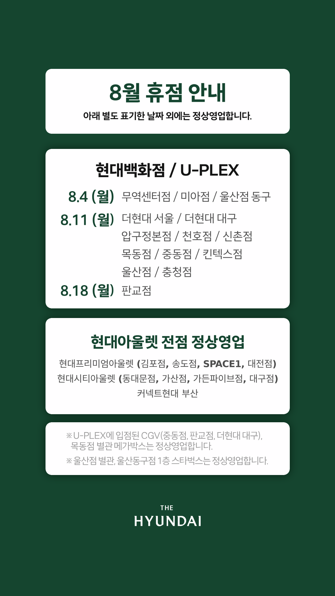 | 현대백화점 9월 휴무 안내 (0) | 2025.09.01 |