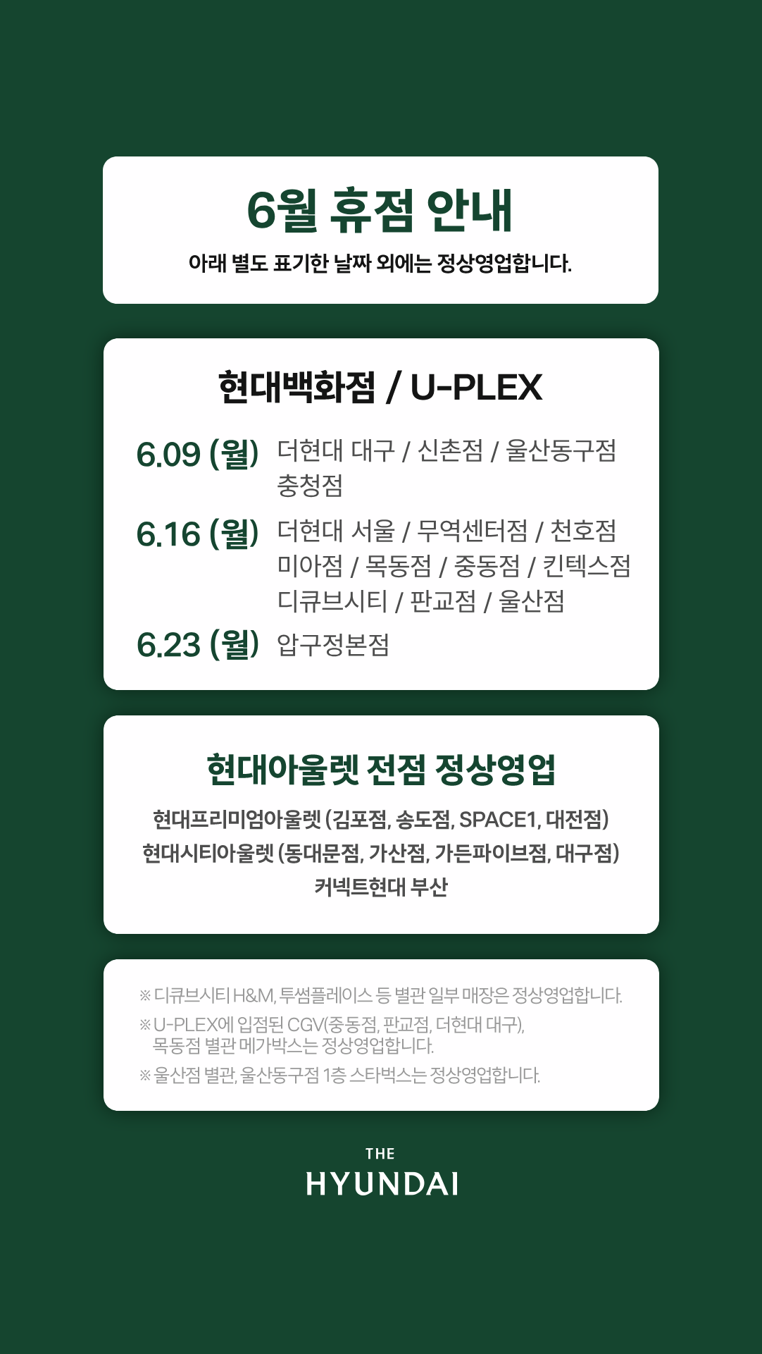 | 현대백화점 7월 휴무 안내 (0) | 2025.07.01 |