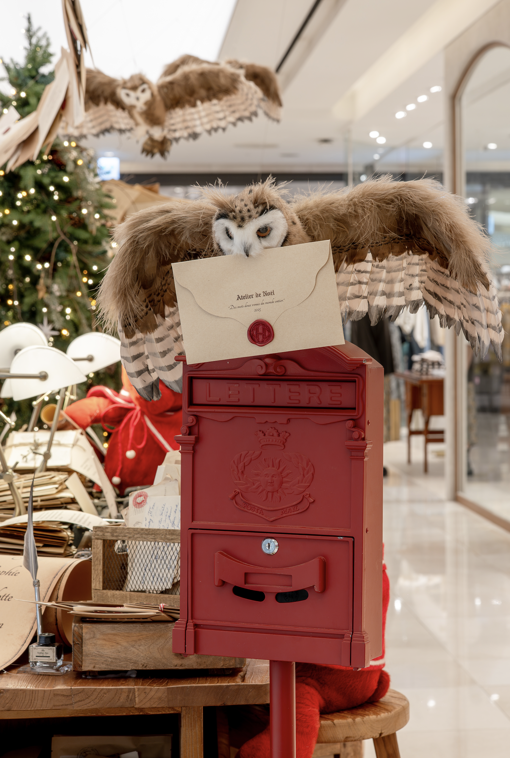 각종 트리 데코와 사이니지가 점내 천장과 벽면, 기둥을 장식한 가운데, 3층 중앙 복도에는 작은 편지 공방이 펼쳐집니다. 어린이들의 소원 편지가 공방에 가득 쌓여 있고, 답장을 배달하는 수리부엉이가 하늘을 날아다니죠. 6층으로 올라가면 선물 공방을 만날 수 있는데요. 아름다운 숲속 코티지 풍경과 더불어 디오라마와 미니 기차가 맞이해 주는 내부 공간을 지나면 선물을 구입할 수 있는 해리상점도 마련돼 있답니다. 아이 손을 잡고 백화점을 찾은 고객들은 하나같이 코티지 앞 포토존을 그냥 지나치지 못하네요.