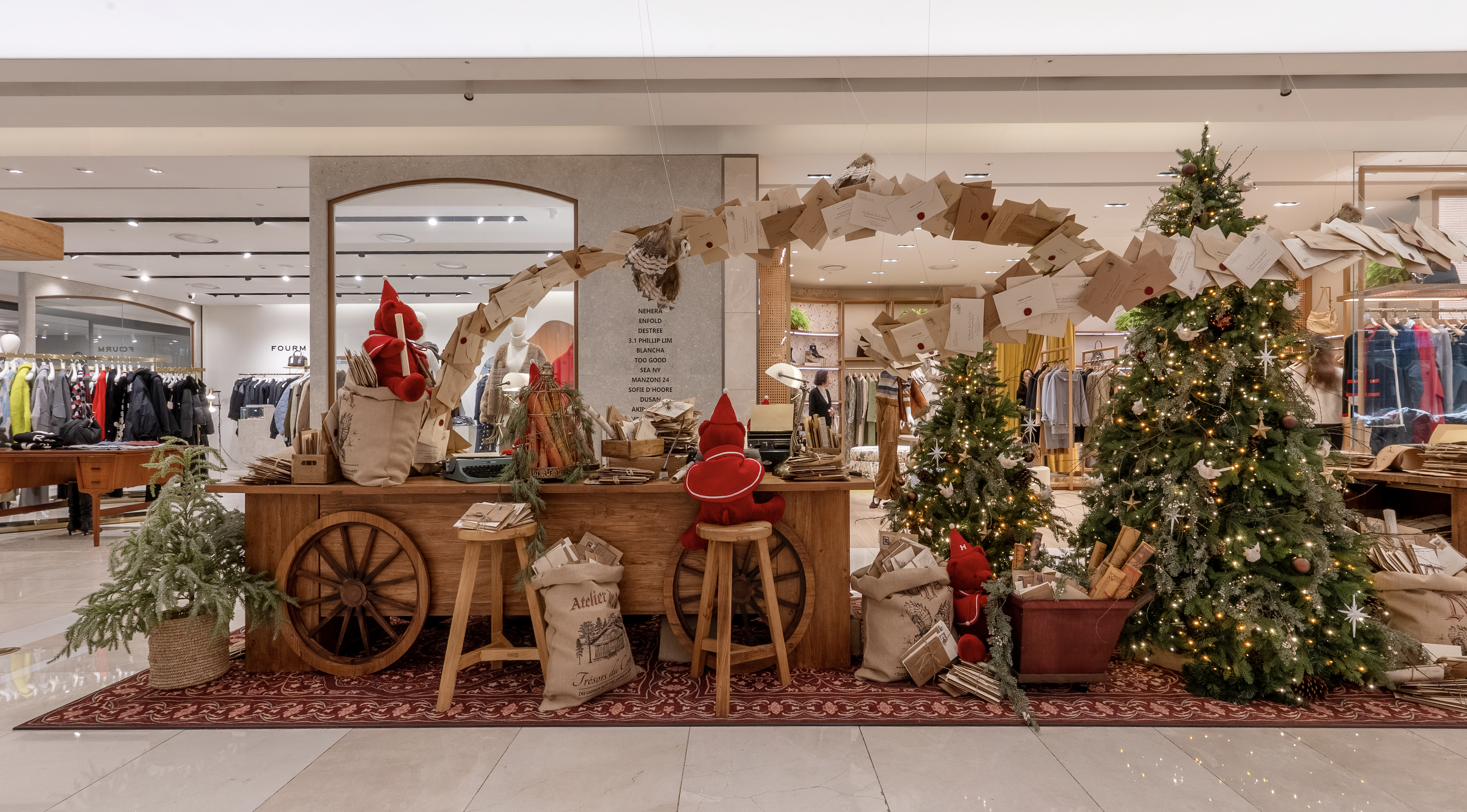 더현대 서울 5층 사운즈 포레스트에서 아름다운 5곳의 코티지를 만나보세요. 크리스마스 트리와 앤티크한 소품으로 꾸민 아늑한 ‘산타의 집’, 타자기로 작성한 편지를 보관하고 분류하며 수리부엉이들이 편지 배달을 떠나는 ‘편지 공방’, 아이들에게 전해줄 선물을 포장하는 ‘포장 공방’, 전 세계 마을을 표현한 디오라마부터 레일을 달리는 미니 기차와 각종 선물, 쿠키와 케이크로 가득한 ‘선물 공방’까지. 마지막에는 현대백화점의 크리스마스 에디션 PB 상품을 구매할 수 있는 해리상점까지 마련돼 있답니다.