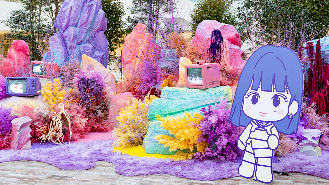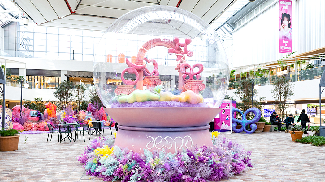 에스파가 초대한 광야에는 그들의 정체성이 담긴 오브제들이 가득해, 에스파의 뮤직비디오 속 풍경을 그대로 옮겨놓은 듯한 모습을 확인할 수 있는데요. 파스텔톤의 풀과 꽃이 어우러진 숲은 몽환적이고 독특한 분위기를 만들어내고, 중심에 있는 대형 워터볼은 마치 광야에 초대된 우리에게 건네는 에스파의 환영인사처럼 느껴집니다.