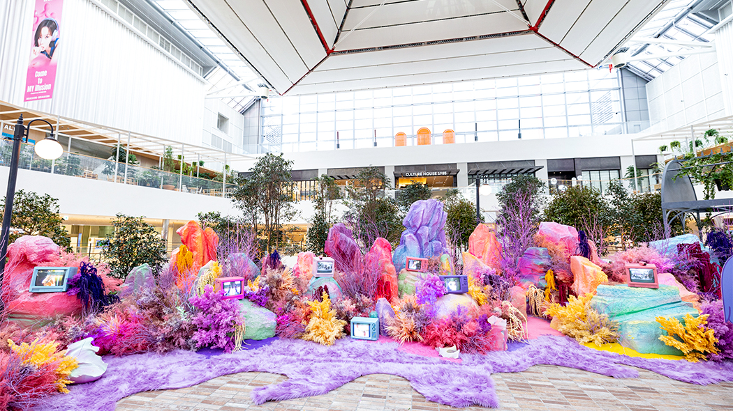 인증 사진도 절대 빼놓을 수 없죠. 이번 팝업스토어에도 에스파의 매력을 담은 다채로운 포토존이 마련되어 있는데요. 형형색색의 모래와 바위, 꽃들로 이루어진 메인 포토존은 다른 차원인 광야에 있는 듯한 느낌을 주기에 충분합니다.