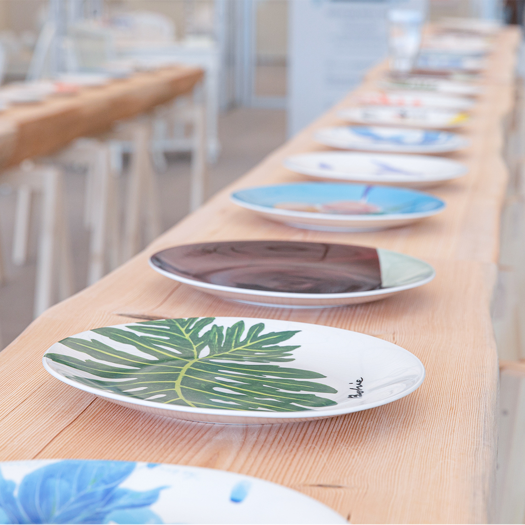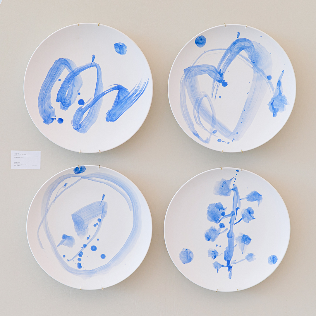<ARTIST TABLE in the GARDEN>은 예술을 마음으로 즐길 수 있는 방법을 제안합니다. 이번 전시에는 하얀 도자 접시에 작가들이 회화를 그려 넣어 완성한 특별 에디션 작품이 판매되는데요. 작가 당 150점씩 제작한 작품들의 판매 수익금을 결식아동들에게 후원함으로써 예술소비의 새로운 가치를 공유하고자 합니다.