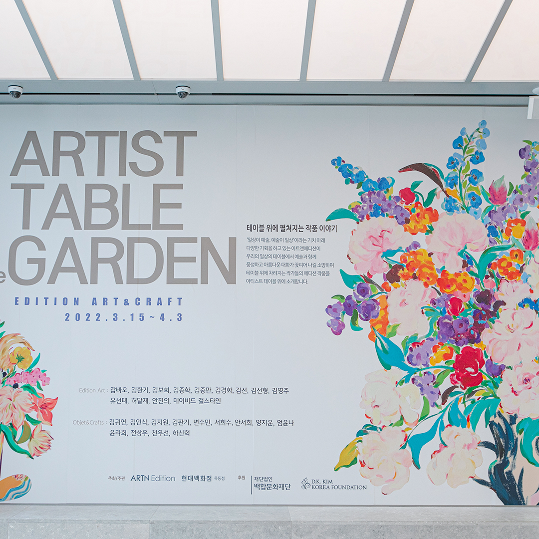 | ARTIST TABLE in the GARDEN 전시기간: 2022년 3월 15일 ~ 4월 3일 전시장소: 현대백화점 목동점 7층 글라스하우스 |