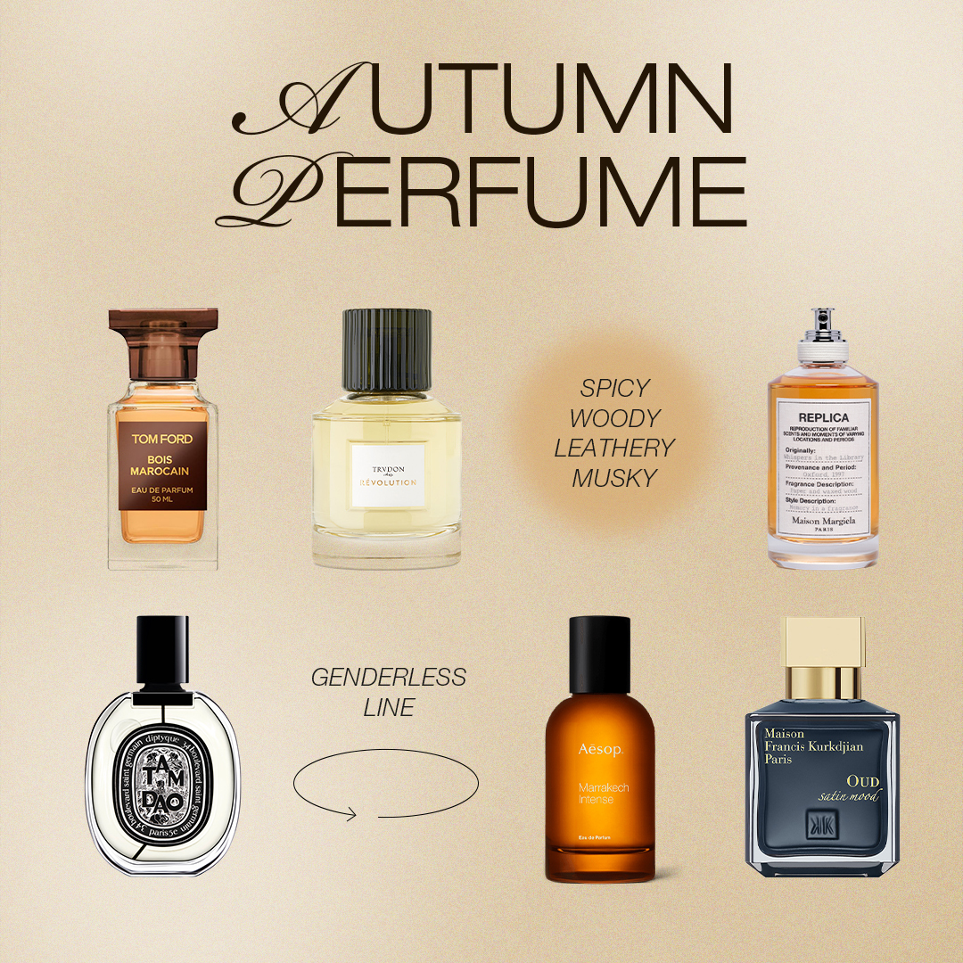 스타일링의 마지막 단계인 향기는 일종의 ‘분위기 메이커’인데요. 이미지에 맞는 향기를 잘 선택하면 그 사람이 가진 특유의 매력을 극대화해 주는 효과가 있습니다. 특히 요즘처럼 쌀쌀한 바람이 불어오는 계절에는 그에 어울리는 진하고 무거운 분위기의 향수로 색다른 분위기를 낼 수 있죠. 오래된 도서관의 익숙한 향, 절이 떠오르는 차분한 향과 같이 가을 분위기와 딱 어울리는 향수와 함께 나만의 가을 분위기를 만들어 볼까요?