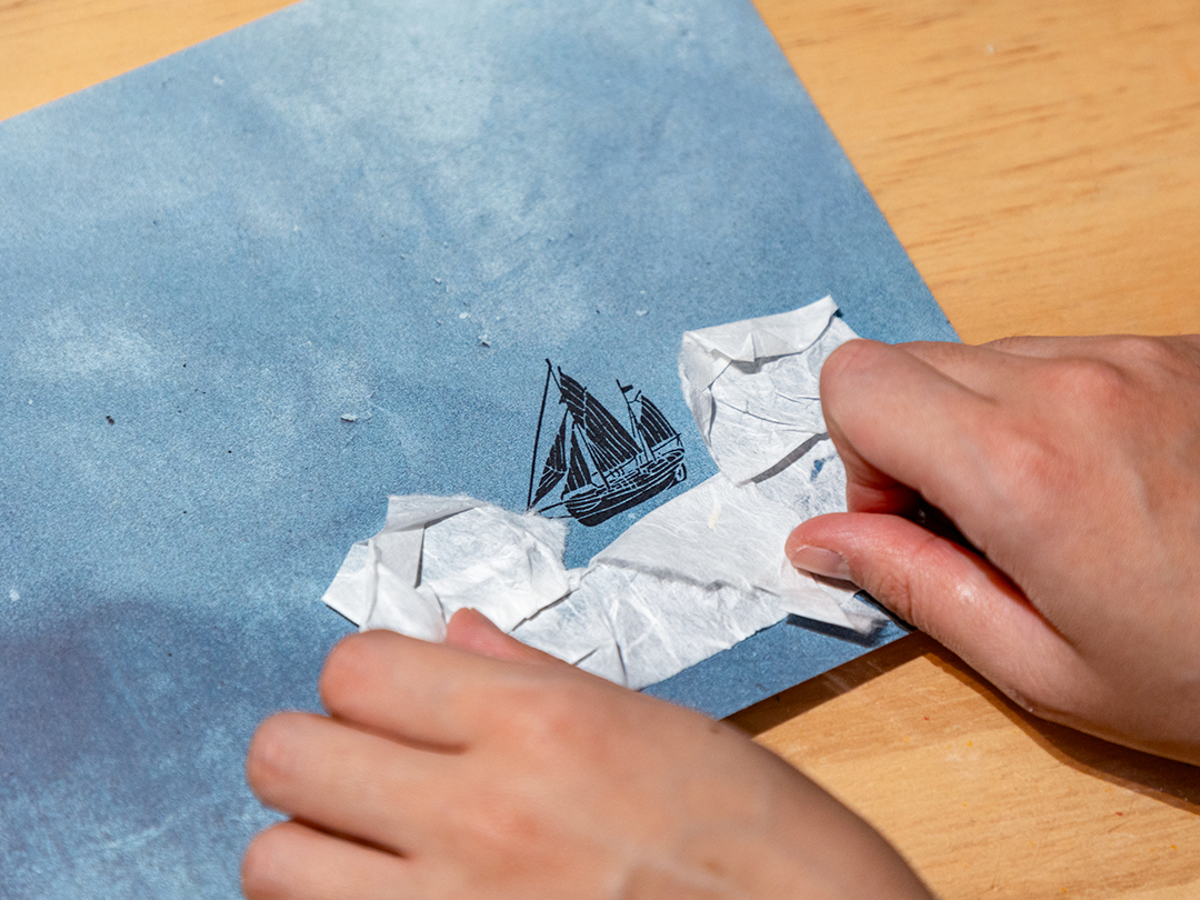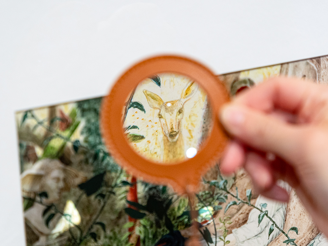 미처 발견하지 못했던 요소들을 돋보기로 들여다보고, 새하얀 한지를 찢어 파도가 부서지는 바다를 만들어보면서요. 나뭇가지에 실과 모루를 붙여 나만의 마법 빗자루를 만들 수도 있어요.