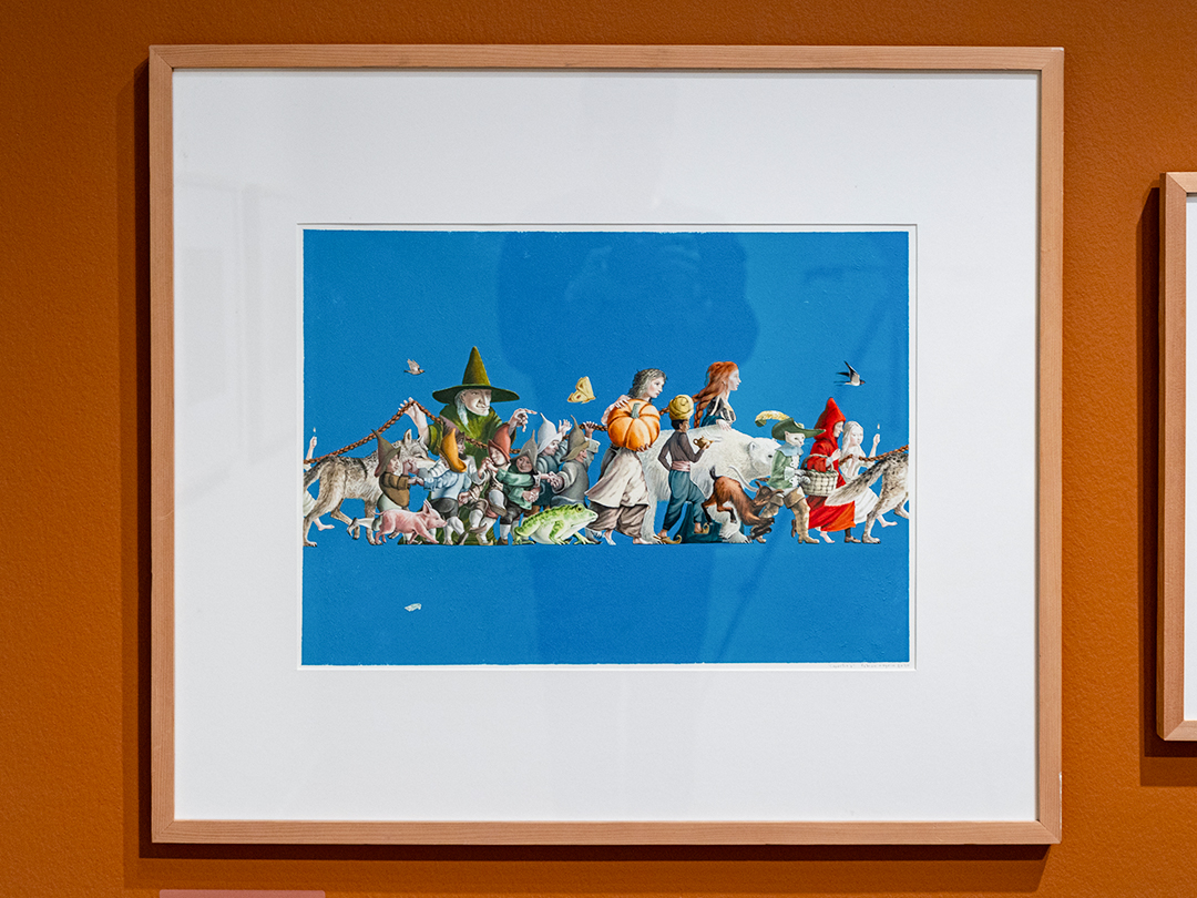 각자의 세상에서 존재하던 인물들이 하나의 세계관으로 합쳐지기도 합니다. 빨간 모자와 장화 신은 고양이, 신데렐라와 일곱 난장이 등 동화 속 캐릭터들이 한 자리에 모여 알파벳 순서대로 줄지어 걸어갑니다.