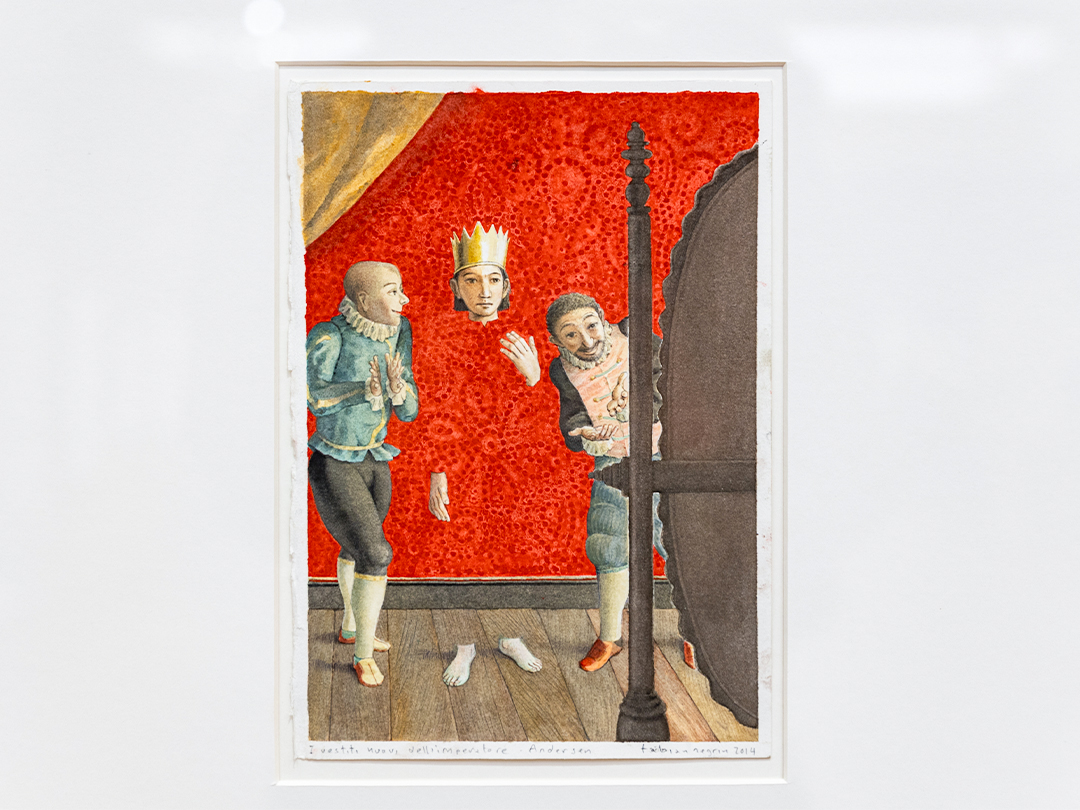 이를테면 <엄지공주>는 조그맣게 묘사되는 대신 실제 엄지 손가락으로 구현되고, <벌거벗은 임금님> 속 임금님은 직접적인 묘사 대신 투명 망토를 뒤집어 쓴 듯한 모습으로 나타나요.