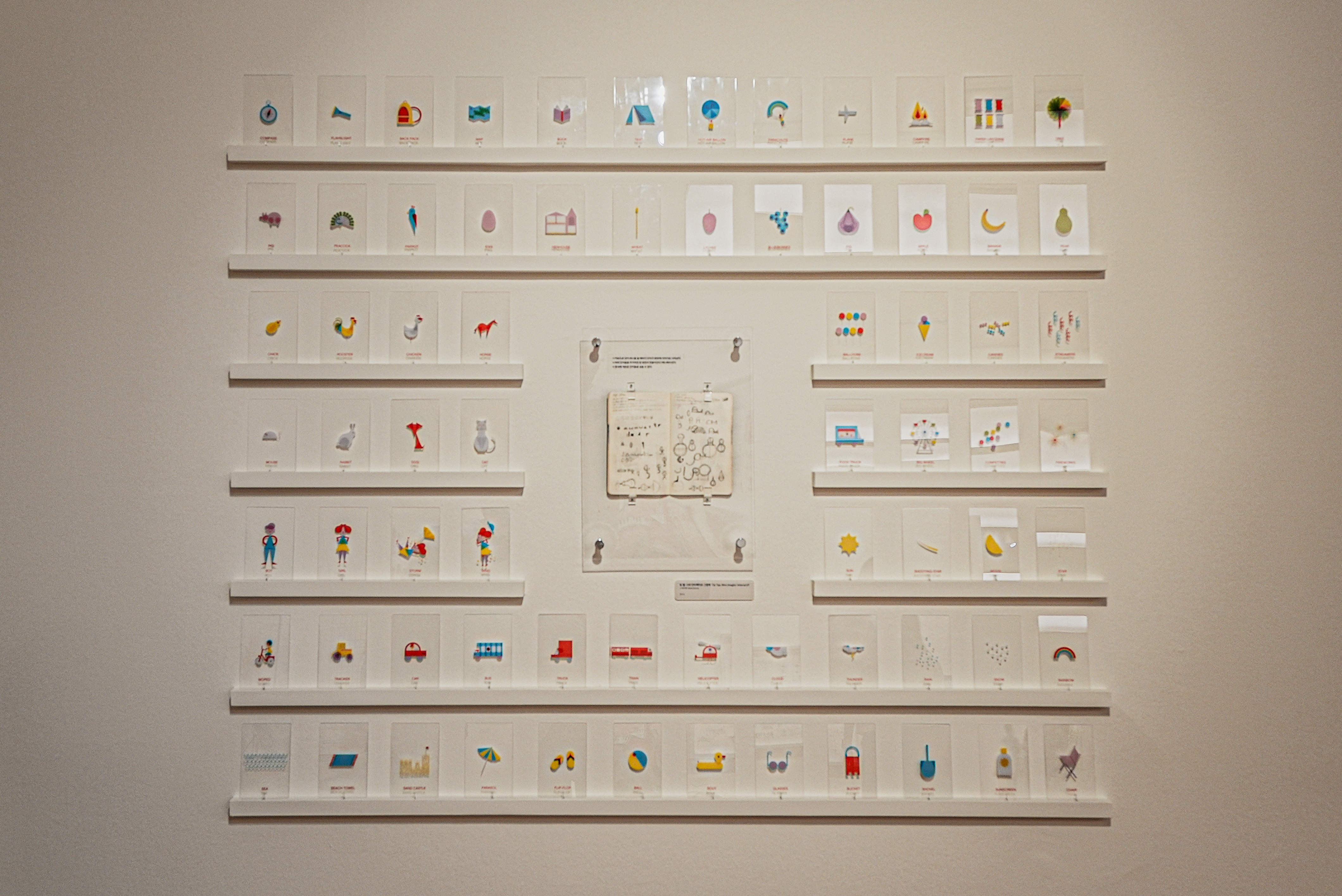 키보드로 단어를 입력하면 해당 이미지가 화면 위에 등장합니다. 단어와 그림을 연결하며 놀이하듯 언어를 배울 수 있어, 아이가 전시 후 집에서도 해보고 싶다고 말했습니다.