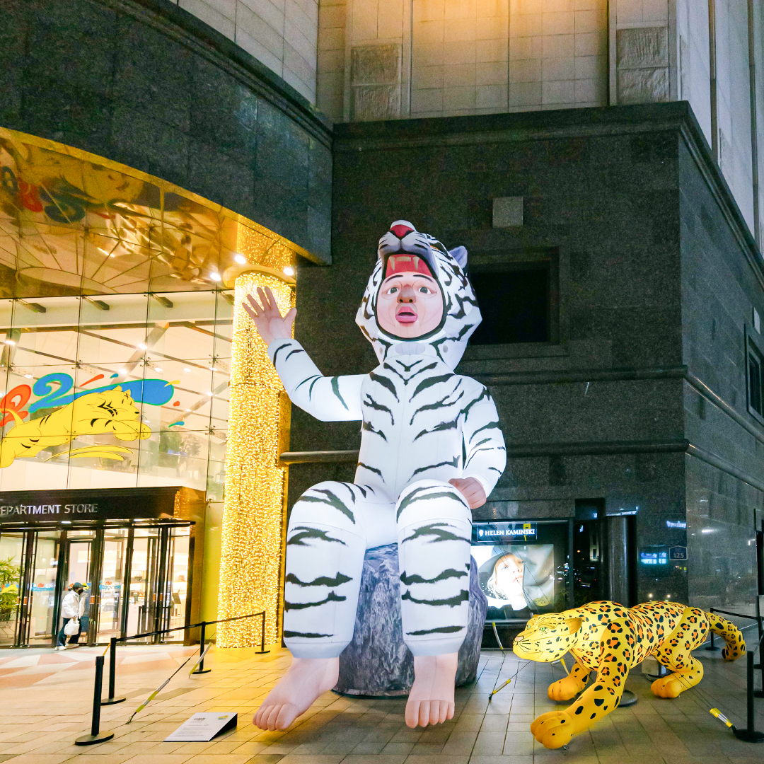 | 오원영 작가 호랑이 벌룬 아트 전시 기간 : 2022년 1월 2일 (일) ~ 2022년 2월 6일 (일) 장소 : 현대백화점 부산점 1층 정문 |