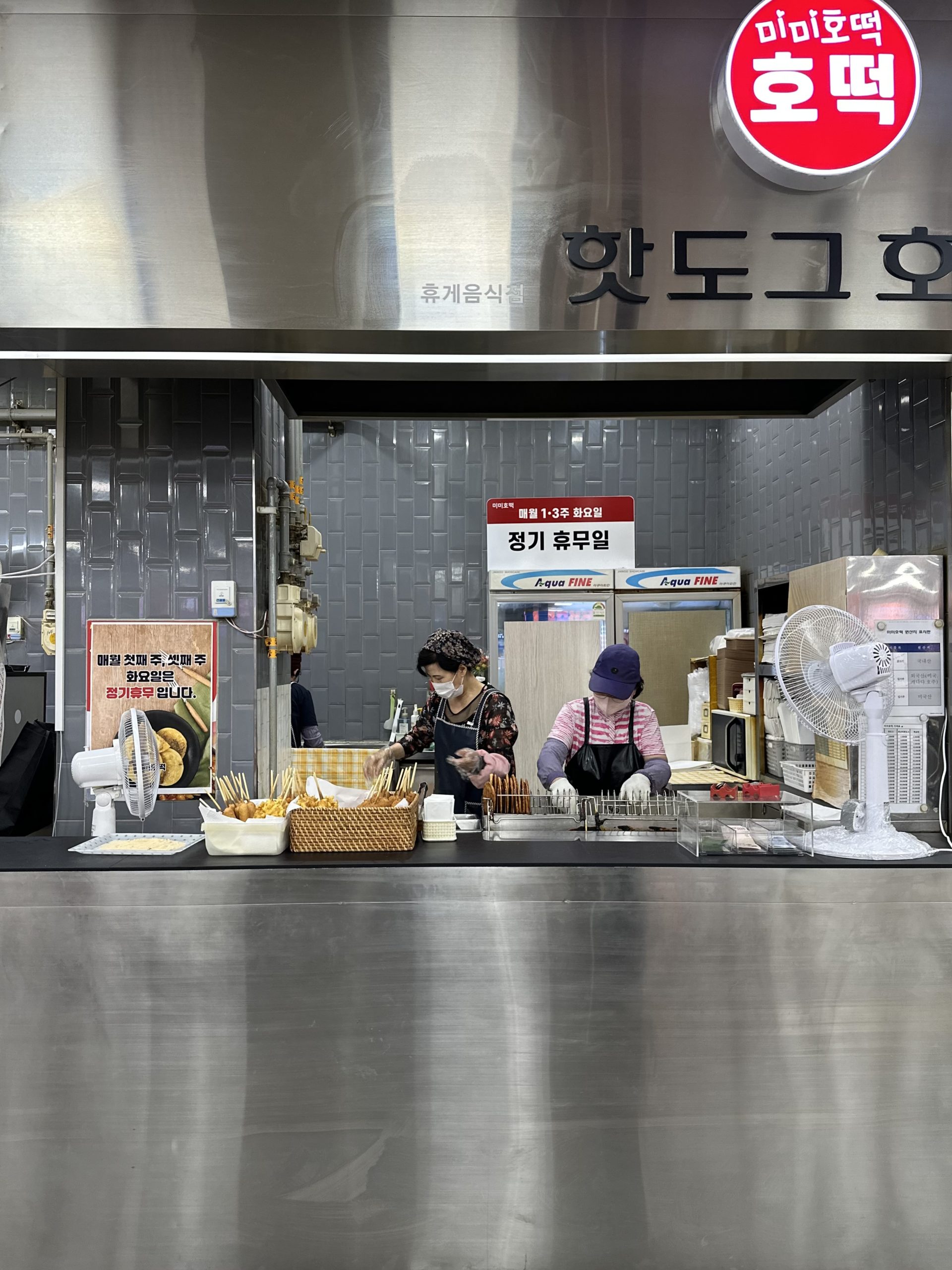 첫 번째 목적지는 용암동 농협물류센터 내 하나로마트 푸드코트에 위치한 미미호떡이다. 호떡 하나 먹으려고 생각보다 먼 길을 나선 우리는 역시나 먹는 일에 진심인 고귀한 영혼이다. 과연 이 길로 가는 것이 맞을까 싶은 낯선 길을, 지도 앱이 알려주는 대로 지름길을 따라 걸었다. 마트 안으로 들어가 푸드코트 키오스크를 찾았다. 10개 정도 넉넉히 사서 몇 번이고 에어프라이어에 돌려 먹고 싶은 마음을 누르고, 갓 튀겨낸 호떡 하나를 손에 쥐었다. 뭐든 눌러 구워내는 크로플 열풍의 영향인지 바삭하게 눌러 튀긴 미미호떡은 고소하고 바삭한, 상상한 맛의 기대감을 충분히 만족시켜주었다. 뒤돌아서 하나 더 사야 하나 고민할 정도로 매력적인 미미호떡, 합격!