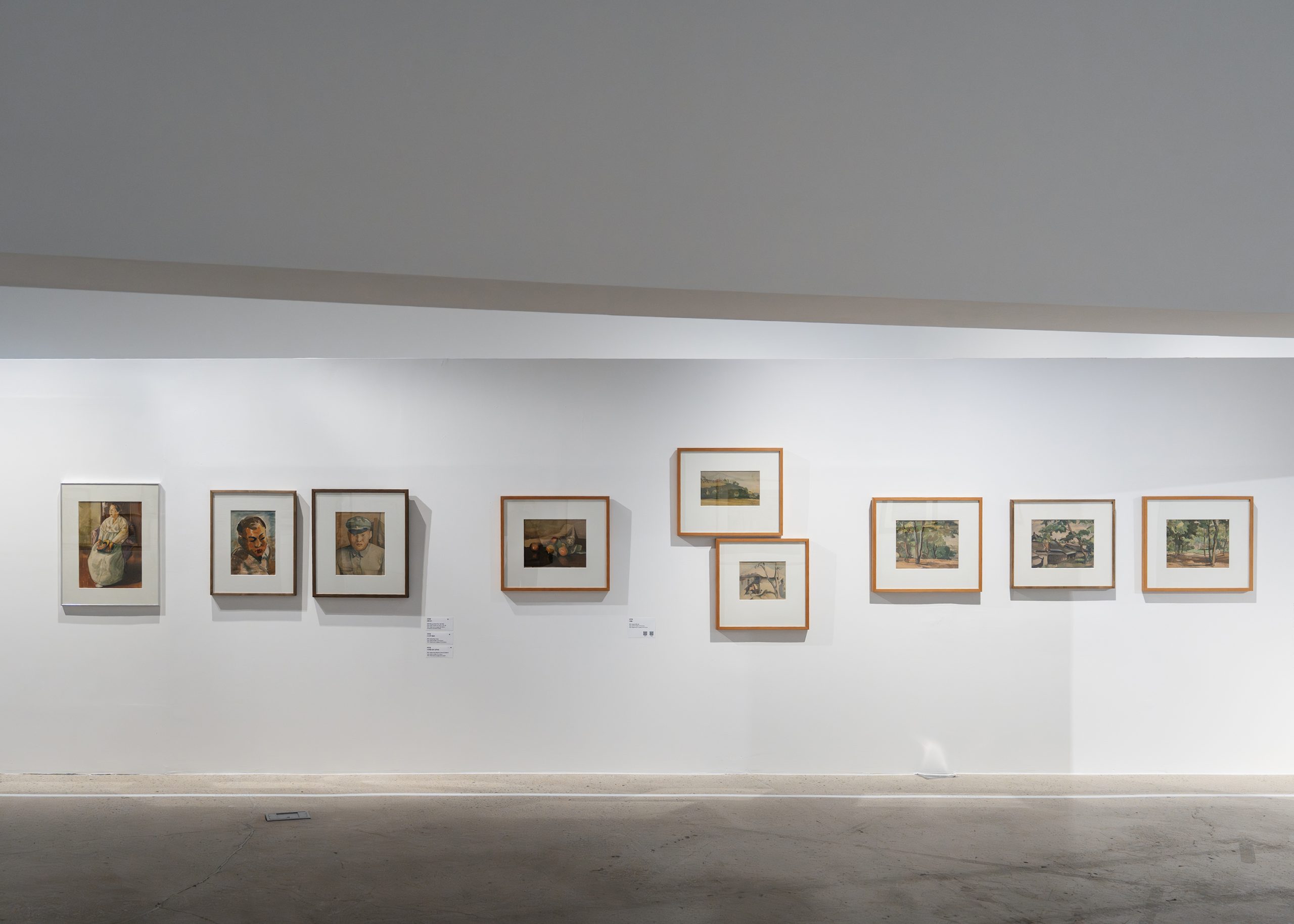 무엇보다 내 마음을 이끈 이인성의 ‘카이유’ 앞에서 한참을 머물렀다. 십수 년 전 호암미술관에서, 그리고 몇 해 전 과천에서 본 그림을 또 다른 장소에서 만나는 건 작품과 연속적인 맥락을 만들어가는 진솔한 경험이다. 전에 보지 못한 것이 보이고, 새롭게 떠오르는 감정이 그림과 나 사이의 공백을 채운다. 이인성이 도쿄로 건너간 이듬해인 1932년에 그린 이 정물화는 당시 그가 근무하던 오오야마 상회의 주소가 그림 뒤에 명기되어 있다고 한다. 카이유는 카라꽃을 뜻하는데, 화면에는 카라뿐 아니라 장미와 루드베키아가 함께 꽂혀 있다. 상승하는 하얀 카라꽃과 대비되는, 고개를 떨군 보랏빛 장미와 붉은 루드베키아. 역동적이고 촘촘한 터치와 흑색 배경의 수평적이고 단속적인 붓 터치가 수직의 화병과 어우러지며 안정감을 자아낸다. 경찰이 오발한 총에 맞아 서른여덟에 요절한 그의 비극을 떠올릴 때, ‘카이유’는 일본 유학 초기의 촉촉한 다짐과 설렘이 담겨 있는 한 시절의 화사한 표현으로 다가온다. 수채화의 본령인, 천천히 스며들고 살포시 겹쳐지며 생겨난 풍부한 혼합은 수채화를 더욱 현재적으로 느껴지게 한다. 1930년부터 1990년까지 완성한 수채화 수십 점이 오늘의 여름을 영롱하게 살고 있었다.
