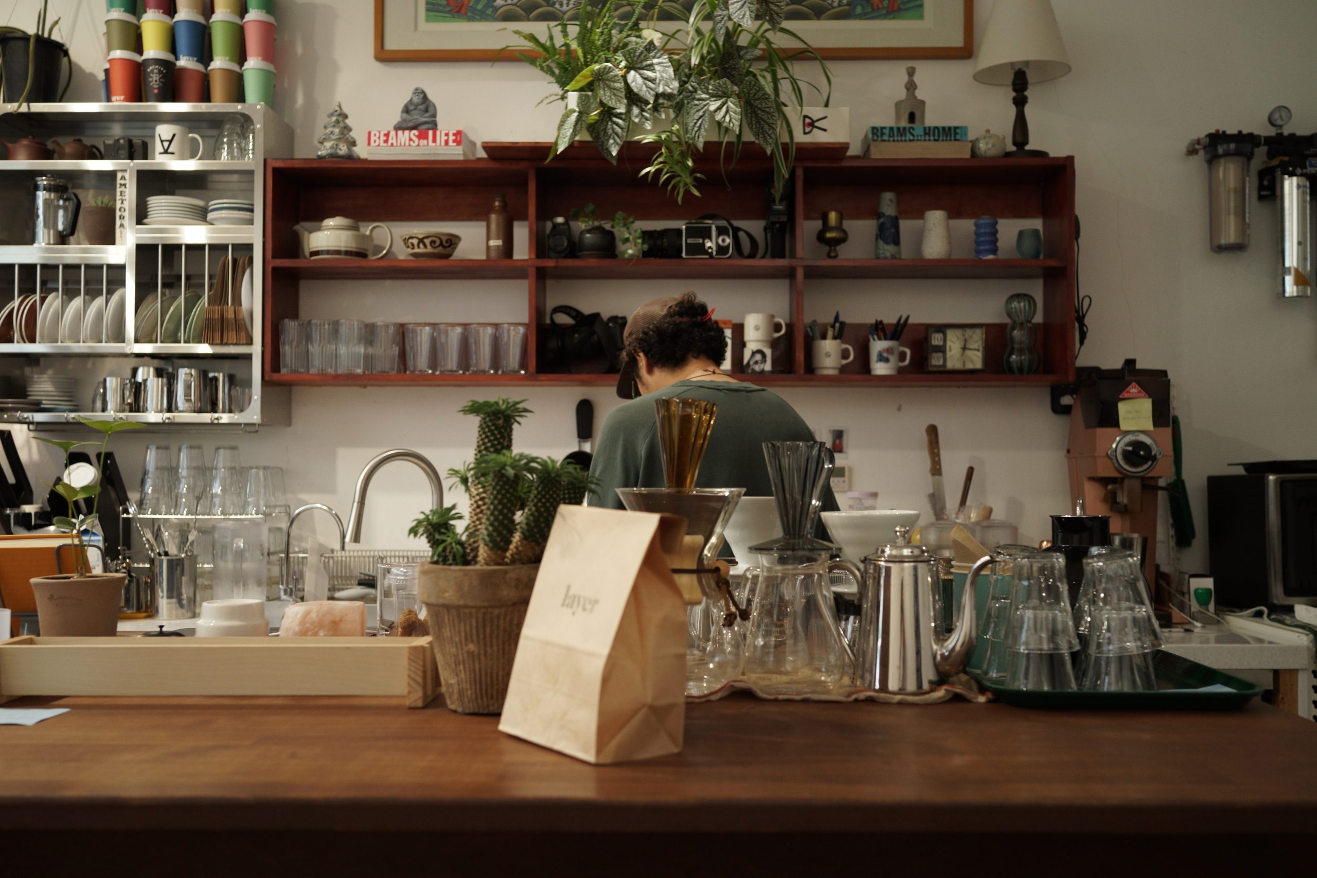 혼돈된 듯 정리된 정도, 피겨와 동양화와 디자인 가구와 서예 작품이 함께 걸린 중첩, 혼돈된 고객에게 친절하고 커피에 엄격한 태도. 그 모든 걸 기억하고 싶어 레이어커피드립 백을 샀다. 청주에서 산 첫 번째 물건이다.