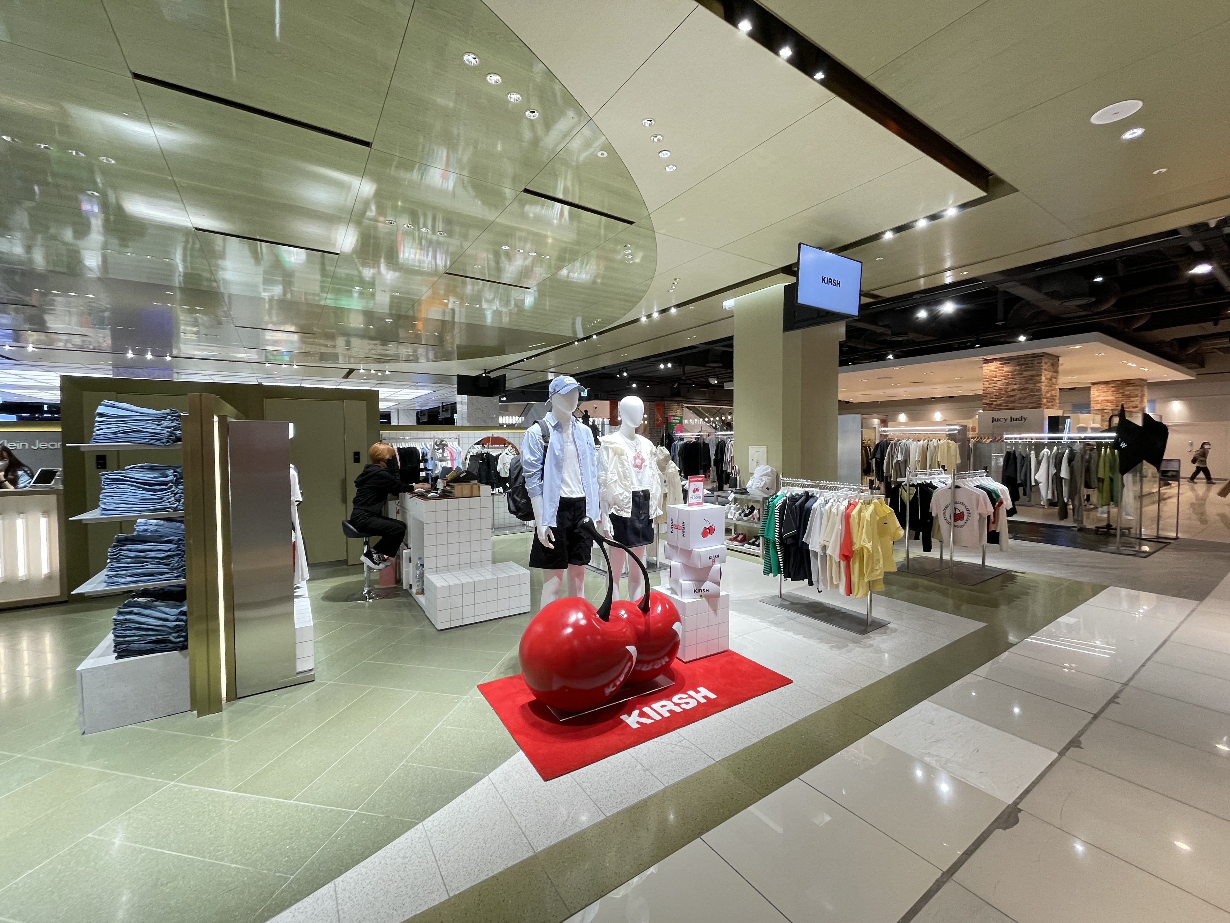 #키르시 매장 입구의 대형 신발 포토존이 눈길을 사로잡습니다. “Research and Creativity”를 아이덴티티로 가지고 있는 패션 브랜드 키르시는 이 시대의 젊음과 그들의 의복을 대변하고 있는데요. 웨어러블한 무드 속에서 키치함을 제안하는 키르시에서 당신의 Creativity를 찾아보세요.