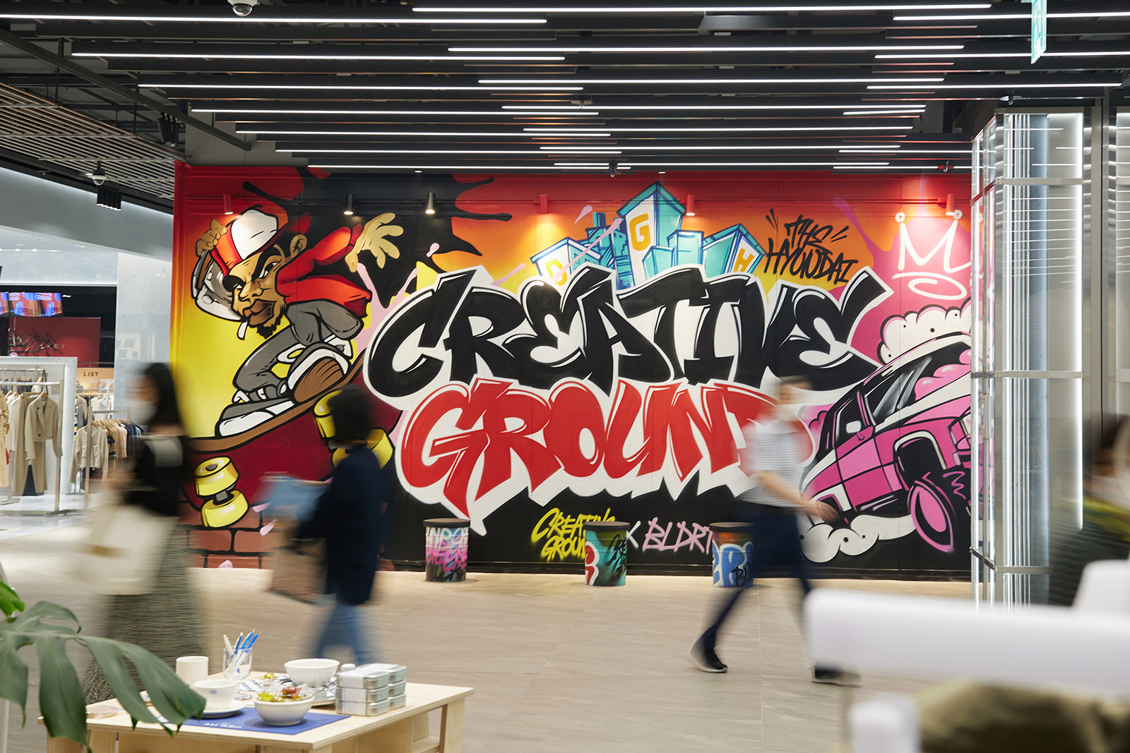 백준현 말 그대로 창의적인 공간입니다. MZ세대가 무엇이든 자유롭게 풀어내고 느낄 수 있는 공간이 되길 바라는 마음이 담겨 있습니다. 브랜드와 소통할 때도 더 트렌디하고 창의적인 프로모션이나 팝업을 유치하고자 노력하고 있습니다.
