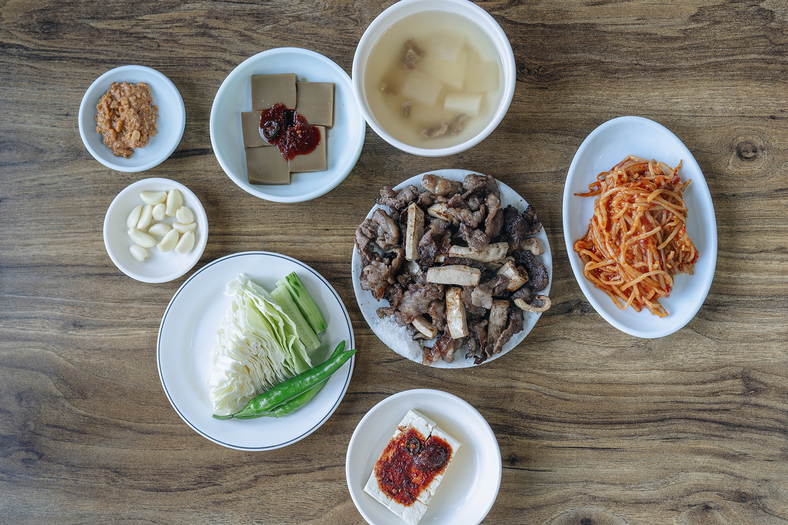 그렇지만 빨갛다 못해 선홍빛에 가까운 생고기의 첫인상은 가히 충격적이었다. 심지어 이름도 뭉티기란다. 왠지 도전 욕구가 샘솟는 상대가 아닐 수 없다. 뭉티기는 뭉텅뭉텅 큼직하게 썰어낸 고기를 의미한다는 의미의 경상도 사투리로, 고기 자체의 풍미가 있어 생으로 먹어도 전혀 싱겁지가 않은데, 기호에 따라 참기름과 마늘, 고춧가루 등을 섞은 양념에 푹 찍어 먹는 게 특징이다.