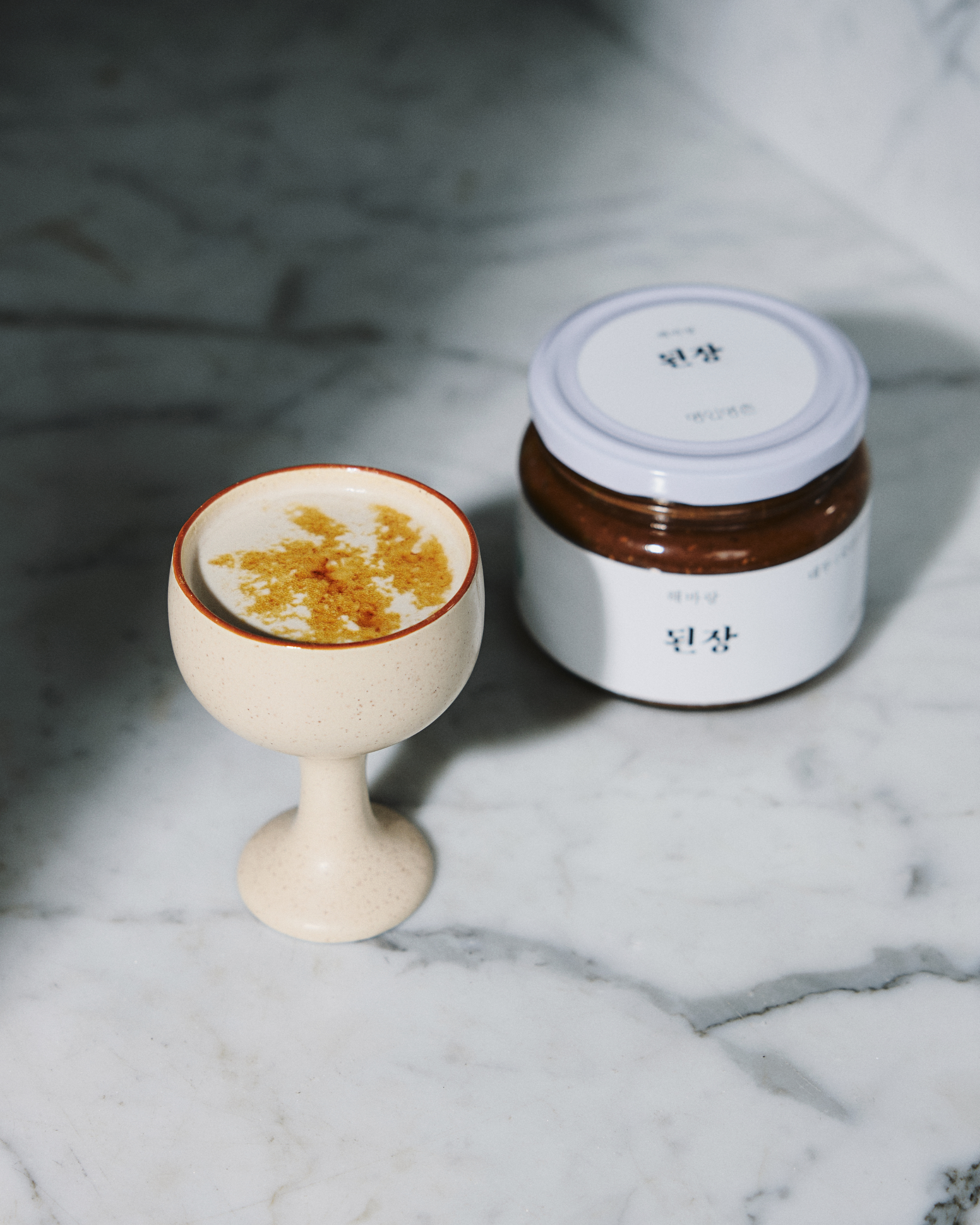 해바랑 된장과 달고나 막걸리를 활용한 '된장(Doenjang) 칵테일’은 오크 숙성 소주와 크림이 어우러져 부드러운 풍미와 함께 달고 짭조름한 감칠맛이 특징입니다. 모든 칵테일에는 명인명촌의 전통 간식이 함께 제공되어, 한식과 칵테일의 새로운 조화를 경험할 수 있습니다.