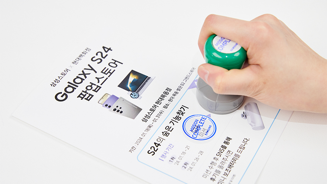 삼성전자의 스마트폰 갤럭시 S24는 인공지능(AI) 서비스가 대거 탑재되어 이전과 차별화된 스마트폰으로 주목받고 있는데요. <삼성 갤럭시 S24 팝업스토어>에서 갤럭시 S24의 숨은 기능 3가지를 찾아 SNS에 인증하면 ‘미니 보조 배터리’를 증정하는 ‘S24 숨은 기능 찾기 이벤트’를 진행합니다. 스마트폰의 새로운 기준을 제시할 갤럭시 S24의 숨겨진 기능을 알고 싶으시다면, 이번 이벤트에 꼭 참여해 보세요!