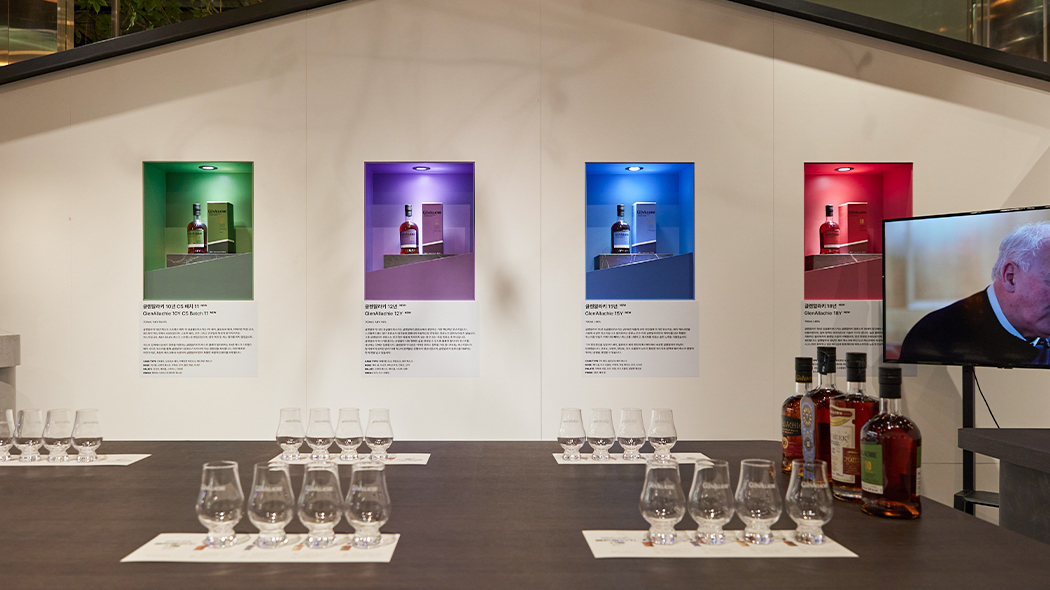 위스키의 풍미로 가득한 ‘테이스팅 존’이 방문객을 반갑게 맞이해요. 테이스팅 존은 방문객이 직접 글렌알라키 위스키를 시음해 보며 그 매력을 탐닉할 수 있는 공간인데요. 위스키를 사랑하는 애호가라면 니트, 위스키가 처음인 초보자라면 하이볼로 취향에 맞게 글렌알라키를 맛볼 수 있답니다.