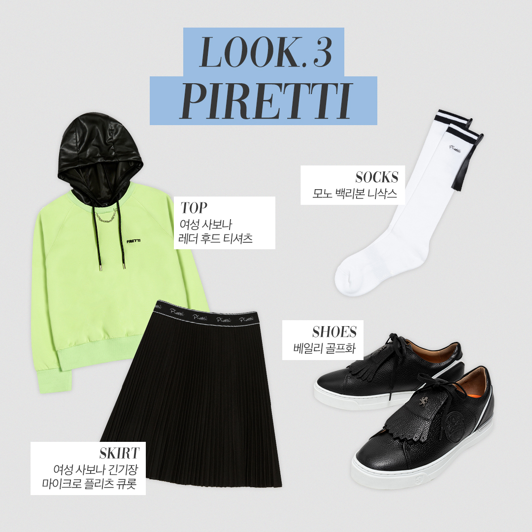 미국에서 시작된 피레티는 프레스티지 골퍼들을 위한 클래식 하면서도 세련된, 프리미엄 제품들을 선보입니다. 타협하지 않는 장인 정신을 기반으로 다양한 룩을 제안하는데요. 비비드한 색감의 특징적인 컬러와 디자인, 플레이어를 위한 세밀한 디테일까지 잘 살아있는 것이 특징입니다.