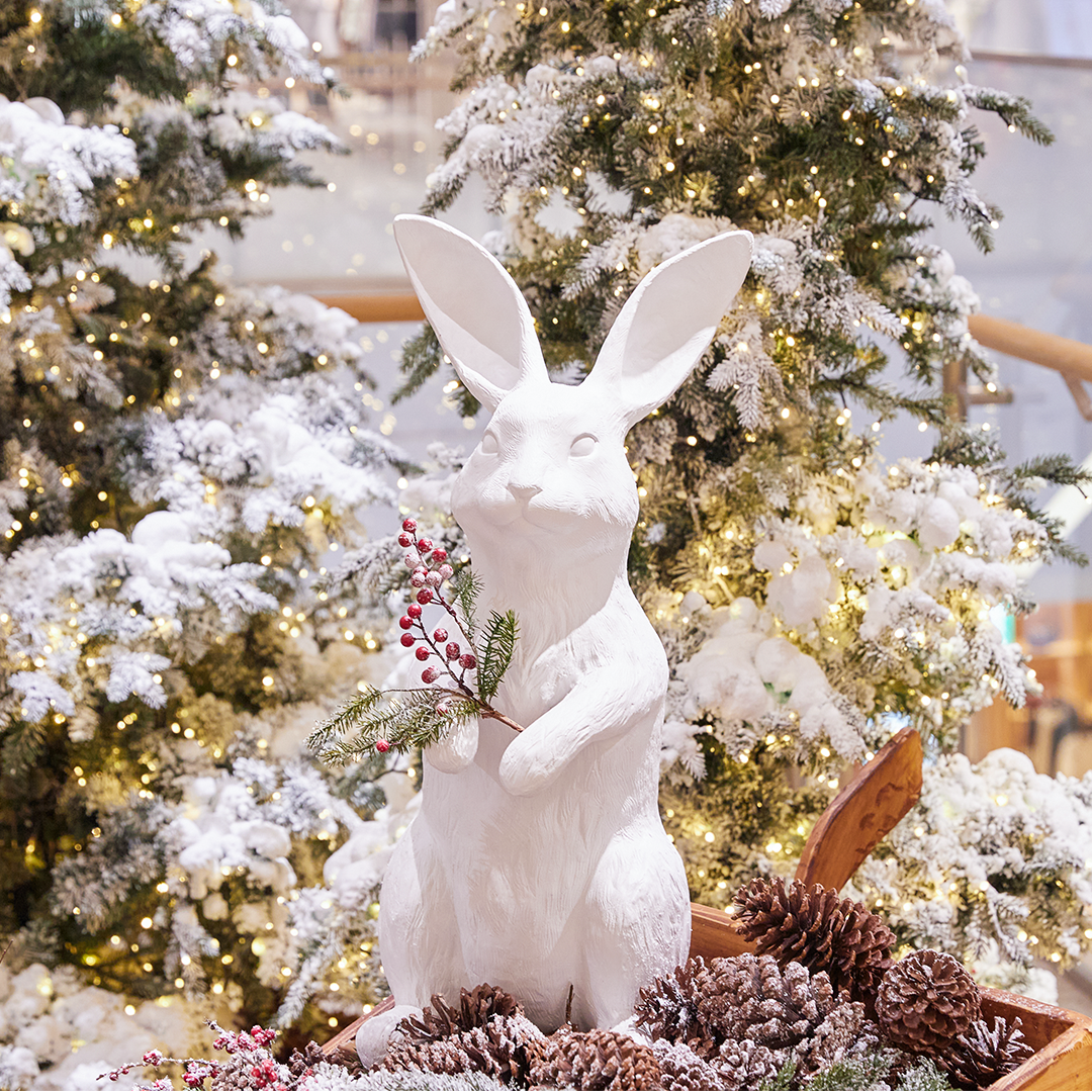 판교점은 오두막과 트리를 통째로 백화점 내부에 옮겨왔습니다. 그래서 더욱 놀랍죠? 이곳에서 소녀가 붉은 열매를 찾을 수 있게 도운 동물들도 함께 확인할 수 있는데요. 처음 붉은 열매를 물어다 준 부엉이부터, 숲 속에서 길을 잃은 소녀를 안내한 여우와 토끼, 무너진 동굴에서 소녀를 구한 곰, 그리고 소녀를 태우고 마을로 한걸음에 내달려 준 사슴까지. 이 동물들은 현대백화점의 다양한 공간에서 만나볼 수 있으니 눈 여겨봐 주세요.