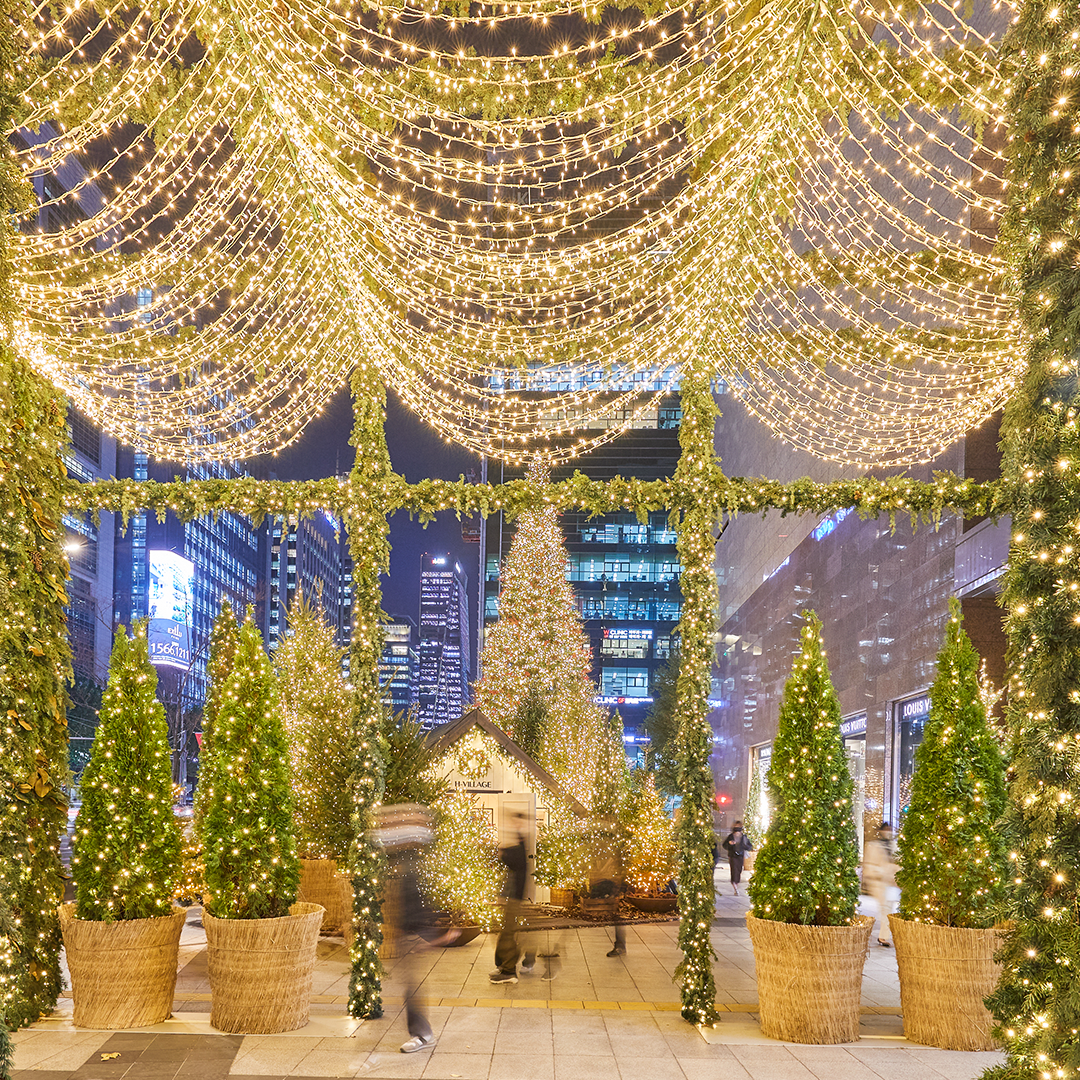 무역센터점은 파사드를 가득 감싼 조명들이 인상적인데요. ‘Hopeful Tree’ 주변을 수많은 나무가 빼곡히 채우고 있죠.