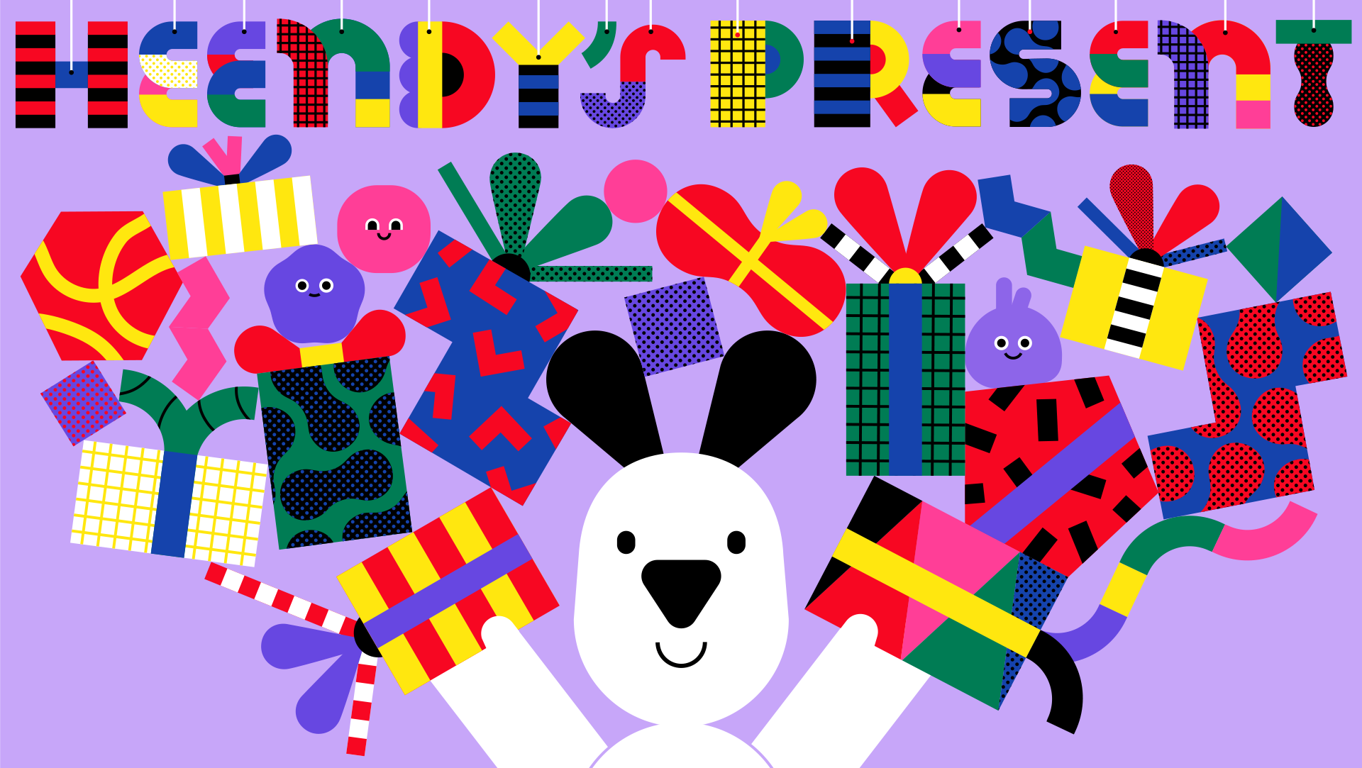 또한 기하학적 조형과 다채로운 패턴을 조합한 선물상자 그래픽과 다채로운 컬러감이 돋보이는 타이틀 디자인으로
