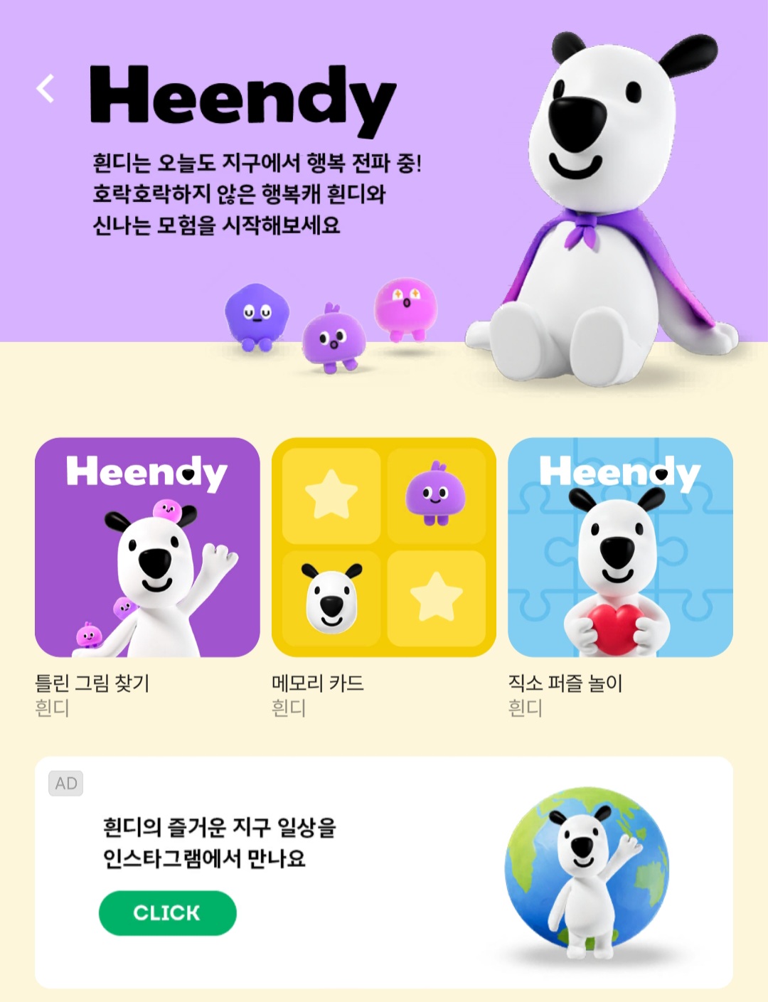 행복캐 '흰디', 키즈 게임으로 만나요.