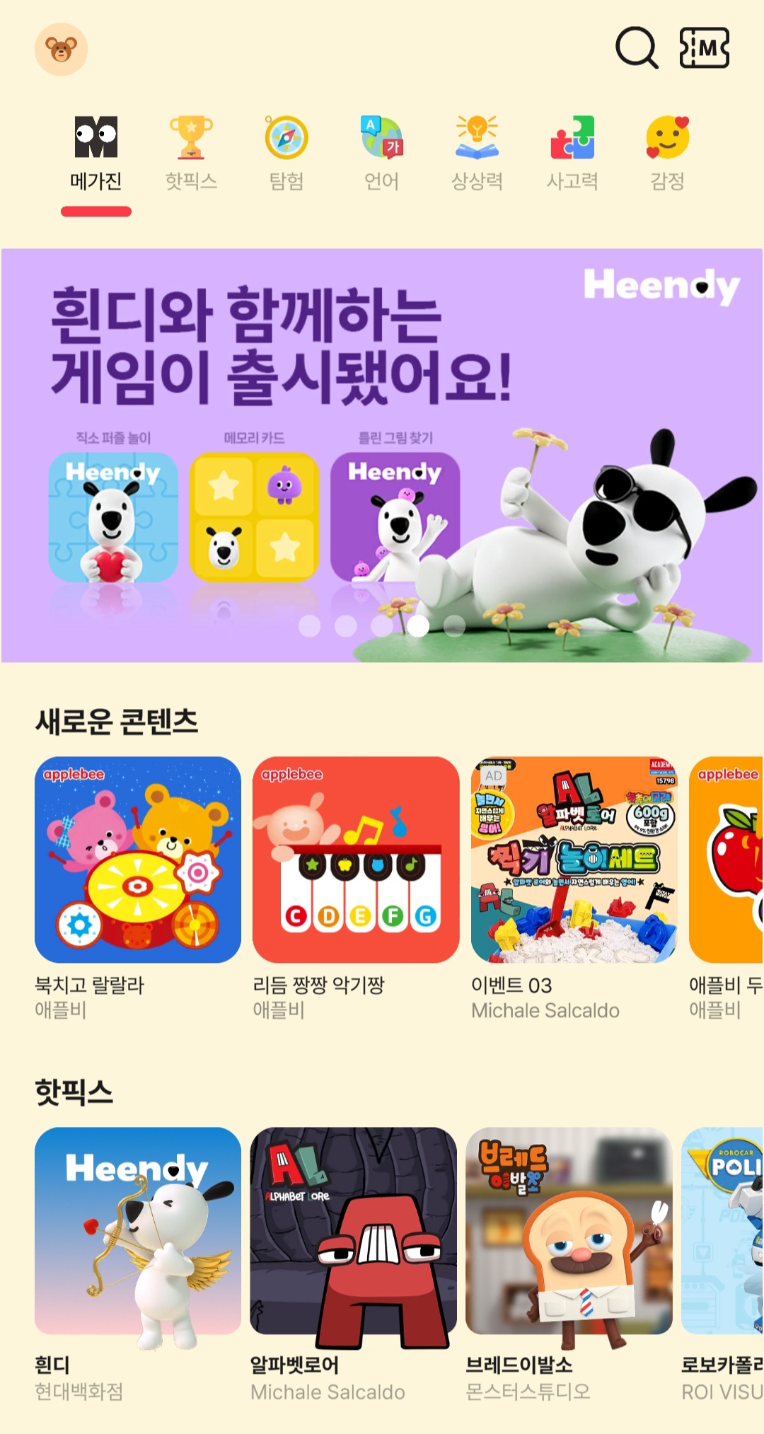 구독형 키즈 전용 콘텐츠 플랫폼 ‘메가진(MEGAZINE)’에 새롭게 오픈한 ‘흰디 게임 3종’을 지금 만나보세요!