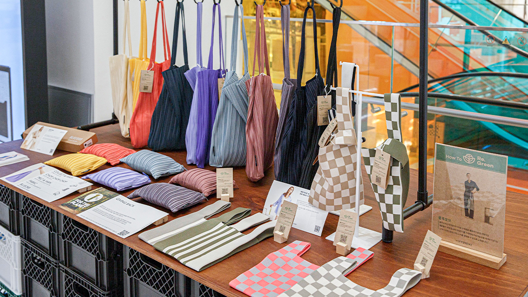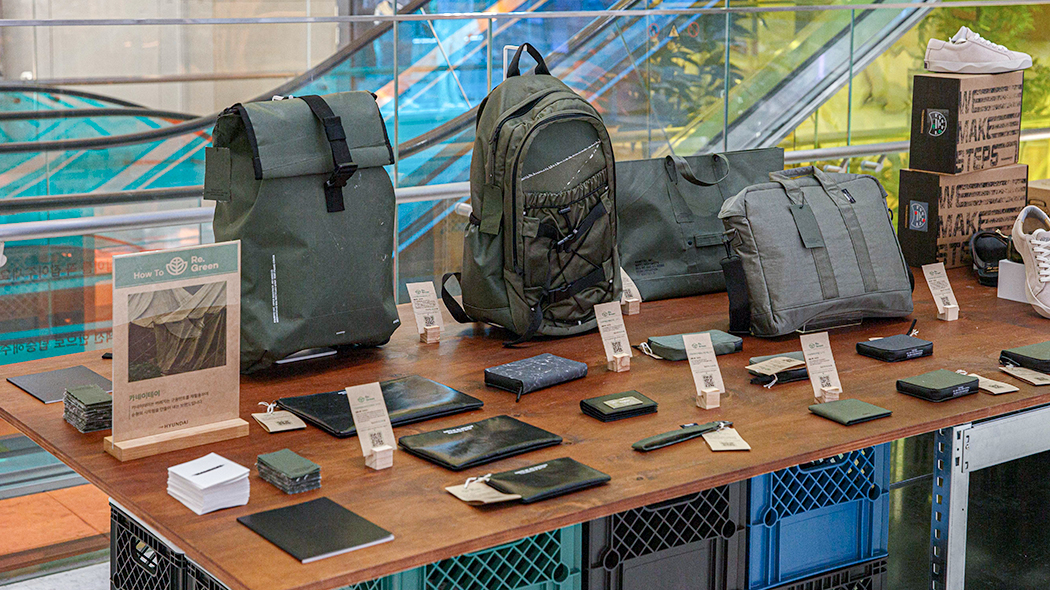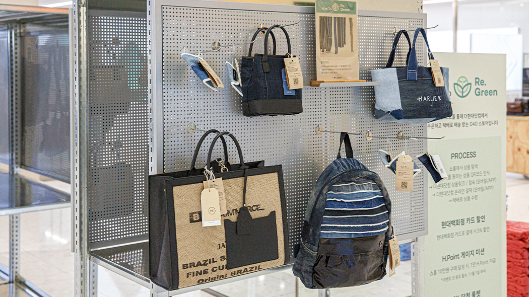‘더현대닷컴’의 ESG 전문관 ‘Re.Green’에는 ‘친환경 소재 사용’, ‘동물복지’, ‘탄소발자국 저감’, ‘사회발전 기여’라는 4가지 기준에 부합하는 브랜드만이 입점할 수 있는데요. ‘How To Re.Green’ 팝업스토어는 바로 이 제품들을 오프라인에서 확인하고 구매할 수 있도록 만들어진 팝업 쇼룸입니다. 더현대 서울 등 다양한 지점에서 검증된 12개 브랜드, 160여 개의 제품 라인업이 자리하고 있죠.