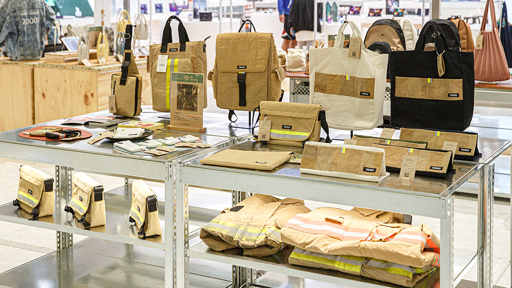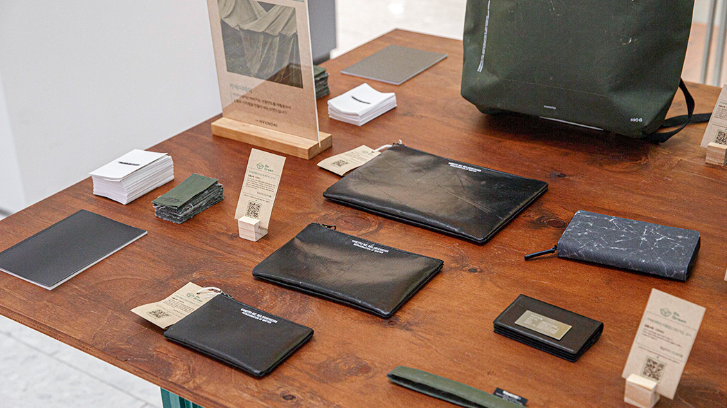 이외에도 수명이 다한 레저스포츠 소재를 활용한 업사이클 브랜드 ‘오버랩’, 청바지나 커피 자루 등의 소재에 예술적 가치를 더하는 업사이클 비건 브랜드 ‘할리케이’ 등 다양한 소재로 만들어지는 친환경 브랜드를 만나볼 수 있습니다.