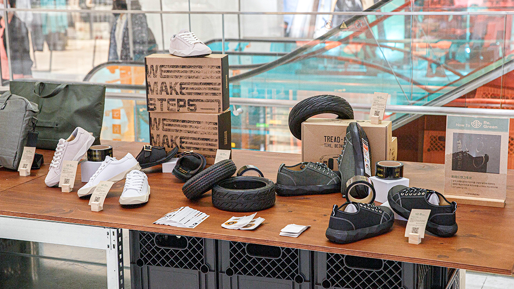 #트레드 앤 그루브 소셜이노베이터들이 전개하는 ‘트레드 앤 그루브’는 폐기될 타이어를 슬리퍼, 스니커즈 등 핸드메이드 슈즈로 완성했습니다. 어디에도 없는 독특한 ‘타이어 슈즈’의 개성을 확인해 보세요.