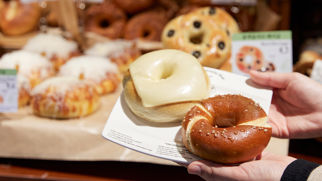 디저트는 물론 식사 대용으로도 즐길 수 있어 여기저기 베이글리스트 포장지를 손에 쥔 사람들을 만날 수 있습니다. 플레인부터 달콤한 맛, 짭짤한 맛까지 취향에 맞는 베이글과 크림치즈를 내 맘대로 선택해 꿀 조합을 맛보는 즐거움을 느껴보세요!