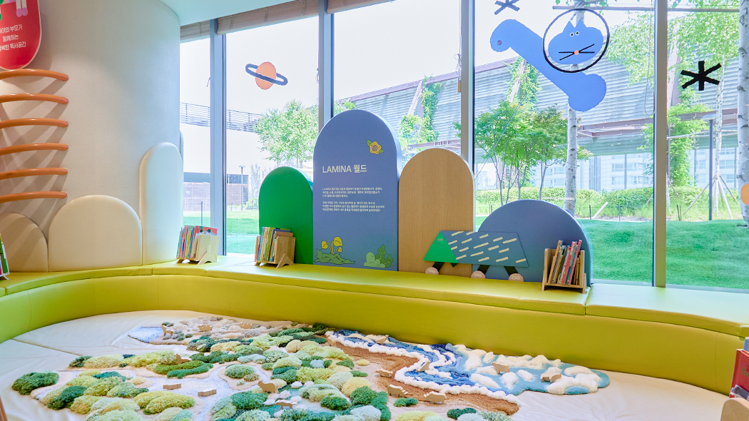 폭신한 실내 놀이터는 터프팅(Tufting)으로 만든 LAMINA 월드로 꾸며졌습니다. 이곳에서는 멸종위기 동물 모양의 나무 블록을 가지고 놀며, 멸종위기 동물들의 다양한 서식 환경을 눈으로 보고 손으로 만져볼 수 있는데요. 모래가 가득한 사막, 나무로 에워싸인 숲, 거대한 빙하가 있는 북극의 모습이 담긴 터프팅 매트를 보며 다양한 서식 환경의 아름다움을 느껴볼 수 있습니다.