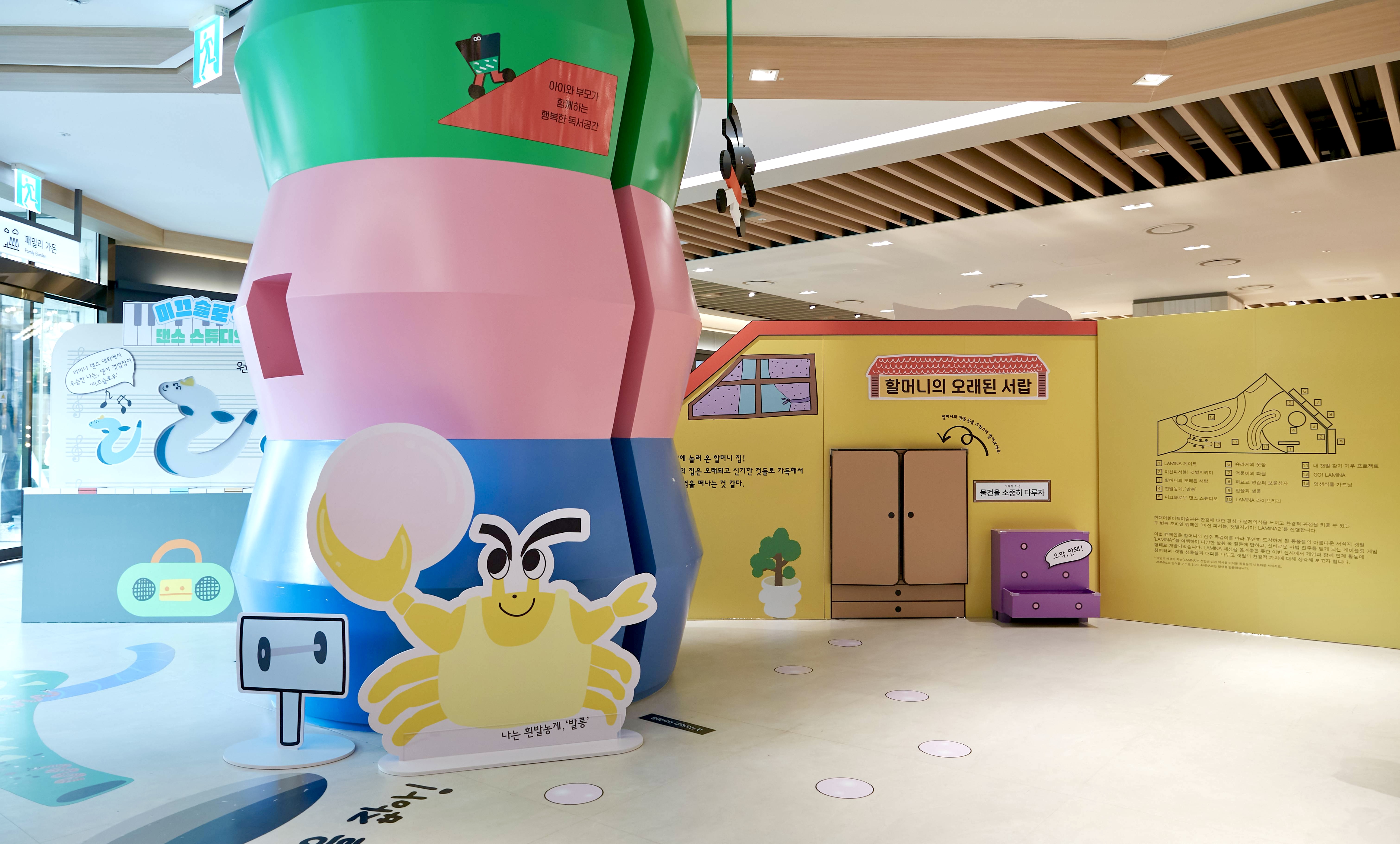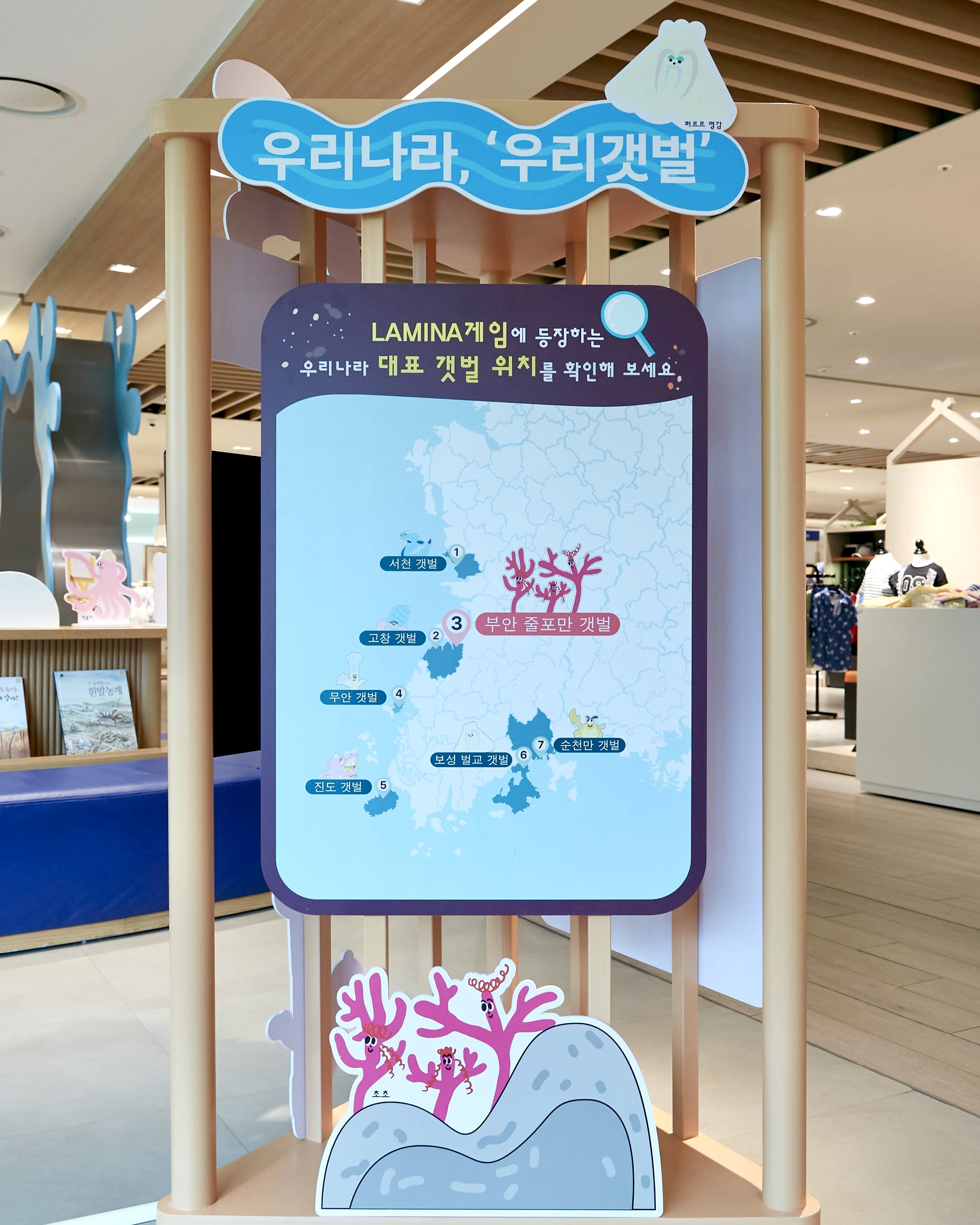 전시의 중심 공간인 [갯벌 탐험존]에서는 아이들이 라미나 세계의 개성 넘치는 친구들을 하나씩 만나며, 보다 쉽고 재밌는 방식으로 갯벌을 배우고 느끼게 됩니다.
