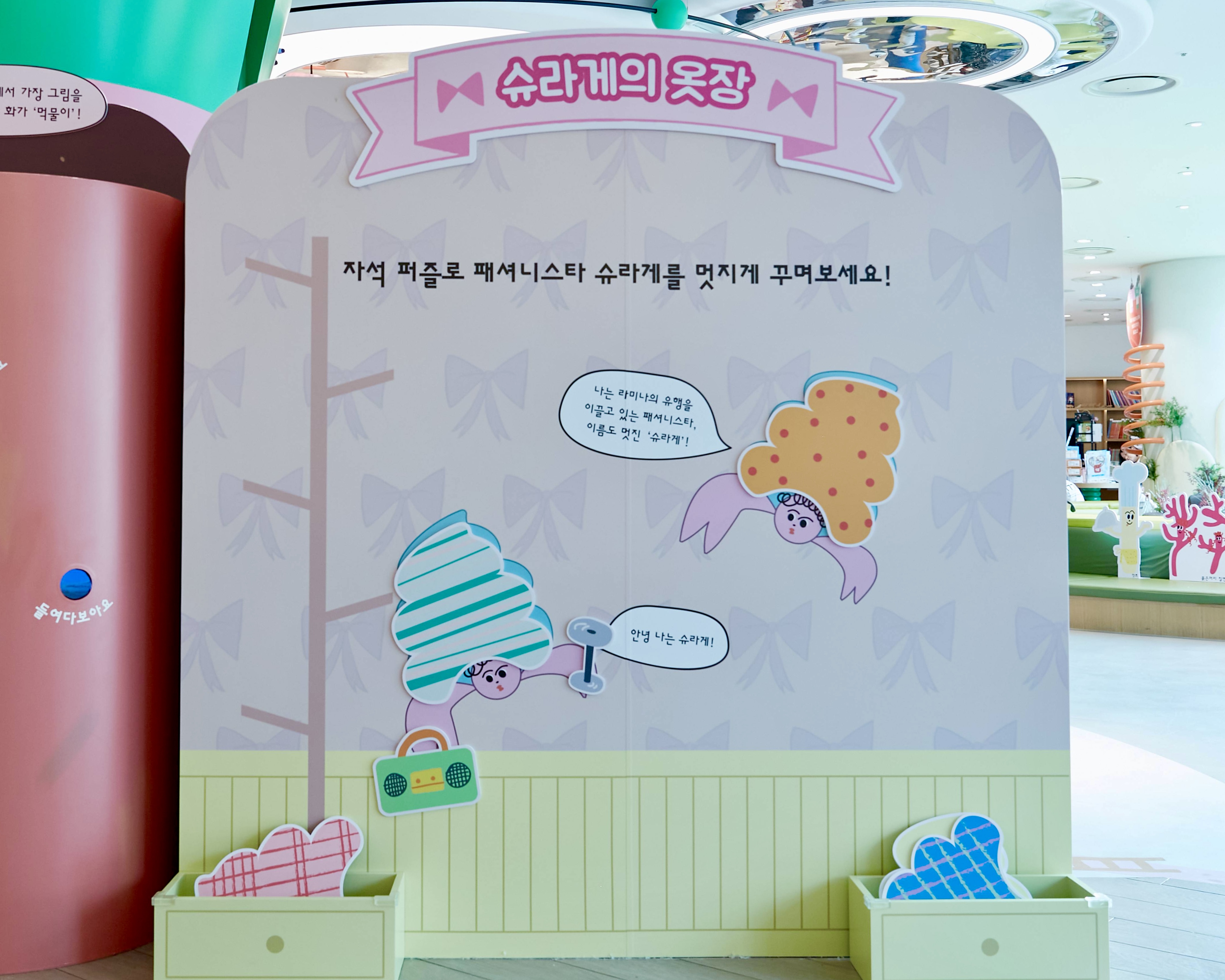 유행을 이끄는 스타일리시한 패셔니스타 ‘슈라게’의 공간에서는 소라 옷을 바꿔 입히는 활동이 진행됩니다. 오목거울 앞에서 내 얼굴을 확인하고, 의상 체험 후 기념사진을 찍으며 창의력과 상상력이 동시에 자극되는 체험입니다.