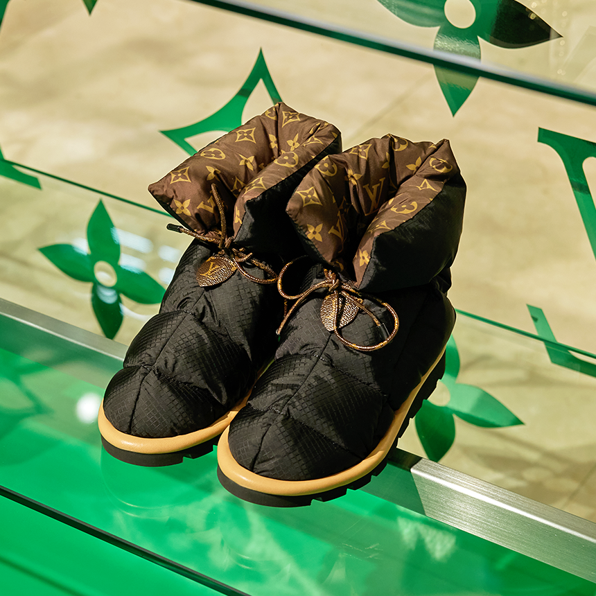 겨울철 필수 아이템인 필로우 컴포트 앵클 부츠입니다. 다운 충전재를 넣어 따스함을 선사하는 방수 나일론 소재로 세련된 퀼팅 마감이 돋보이는 상단 부분과 아이코닉한 모노그램 패턴을 장식한 안감을 가졌는데요. 양말과 같은 메쉬 텍스타일 소재의 내부 레이어가 탁월한 고정력과 편안한 착용감을 동시에 선사합니다. 나파 가죽 소재의 트리밍을 더한 가벼운 마이크로 겉창으로, 실내와 실외에서 모두 착용 가능합니다.
