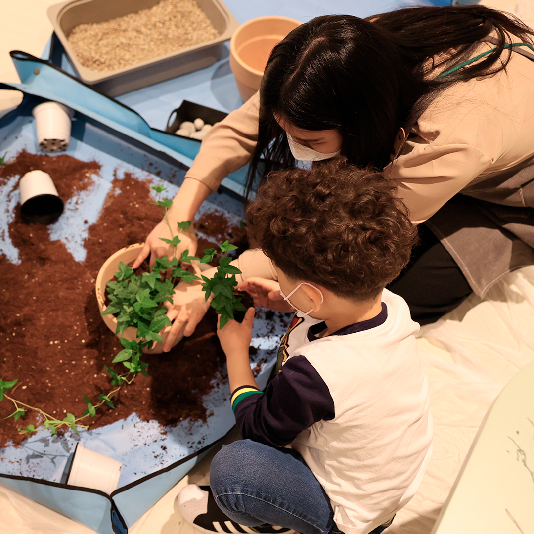 3주 동안 진행되는 ‘Little Botanists’는 식물에게 꼭 필요한 ‘햇빛’, ‘물’, ‘토양’을 이해할 수 있게 하는 전문 식물 프로그램인데요. 덩굴에 대해 배우고 덩굴을 위한 구조물을 만들기, 물을 많이 먹는 식물을 위한 화분 만들기, 흙을 직접 만져보고 식물을 위한 흙 고르기 등의 다양한 체험을 통해 자연을 느끼고 그린썸노트에 배운 것을 기록하며 가드닝을 경험할 수 있어요.